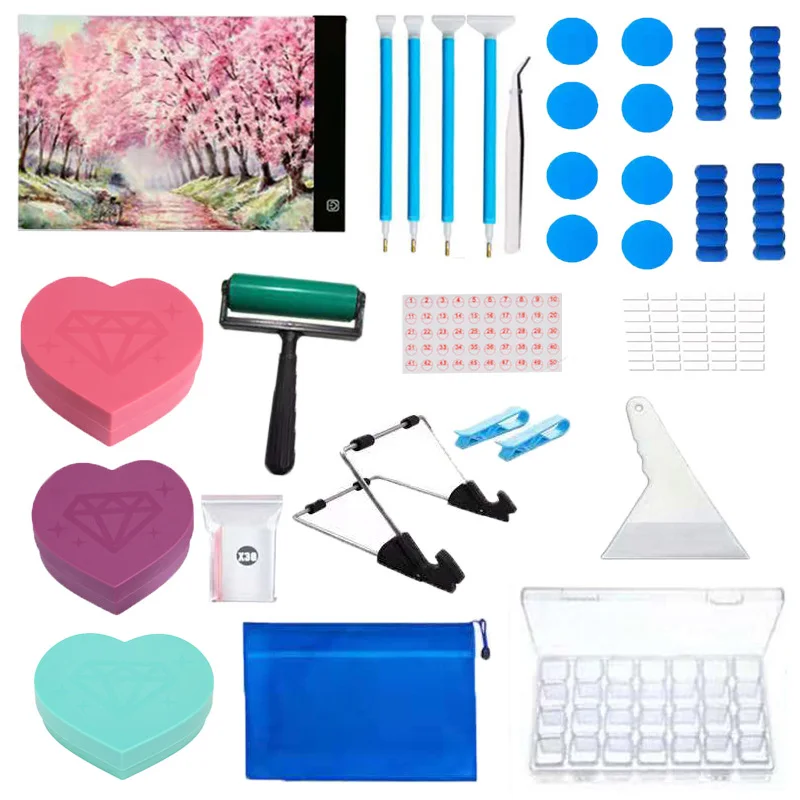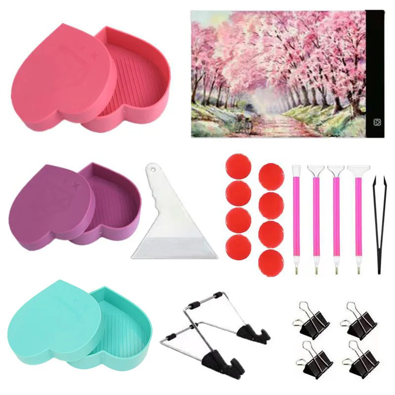 DIY Инструменты для вышивки картин со стразами аксессуары наборы Алмазная вышивка ручка-пинцет, клей, коробка для хранения, светодиодный светильник коврик стол