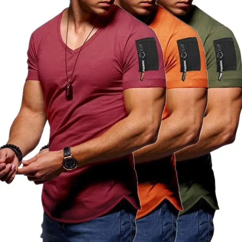2021 новые летние туфли-лодочки на молнии; Футболка с коротким рукавом; Мужская футболка свободного покроя с v-образным вырезом модная футболка мужской фитнес уличная футболки топы Размеры M-3XL
