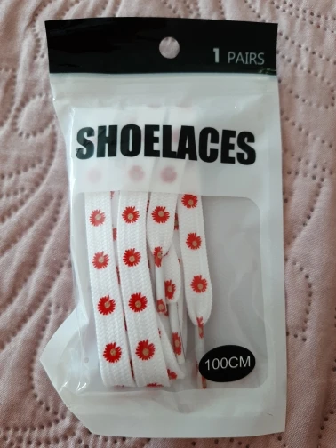 Отличные плотные шнурки, как на фото продавца. Цвета яркие, красивые. Принт чёткий, цветочек к цветочку. Упаковка фабричная. 100-сантиметровые шнурки стоили 79,21 руб. Спасибо продавцу, рекомендую.
