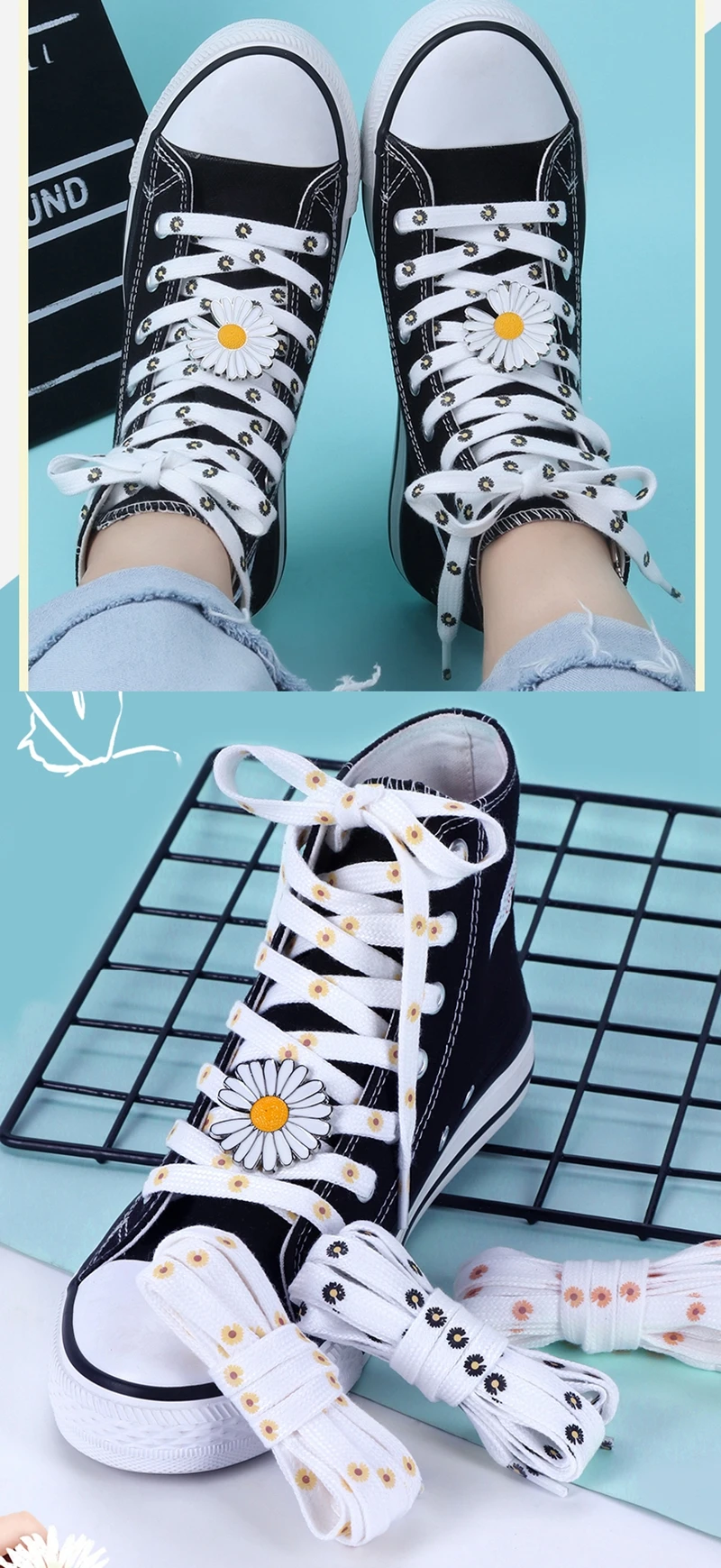 Ромашки плоские шнурки AF1 спортивные с мультяшным принтом высокие холщовые кроссовки обувь кружева для прогулок модные шнурки унисекс