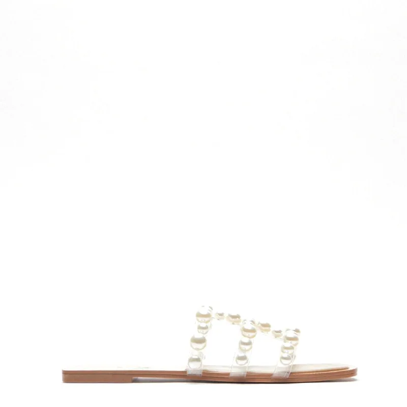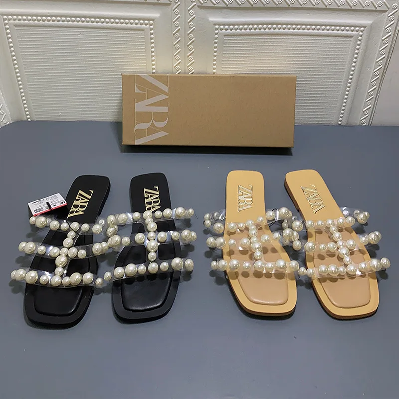 Женские летние тапочки ZA, элегантные туфли на плоской подошве с жемчужной вставкой, бежевые квадратные женские туфли с бисером, новинка 2021