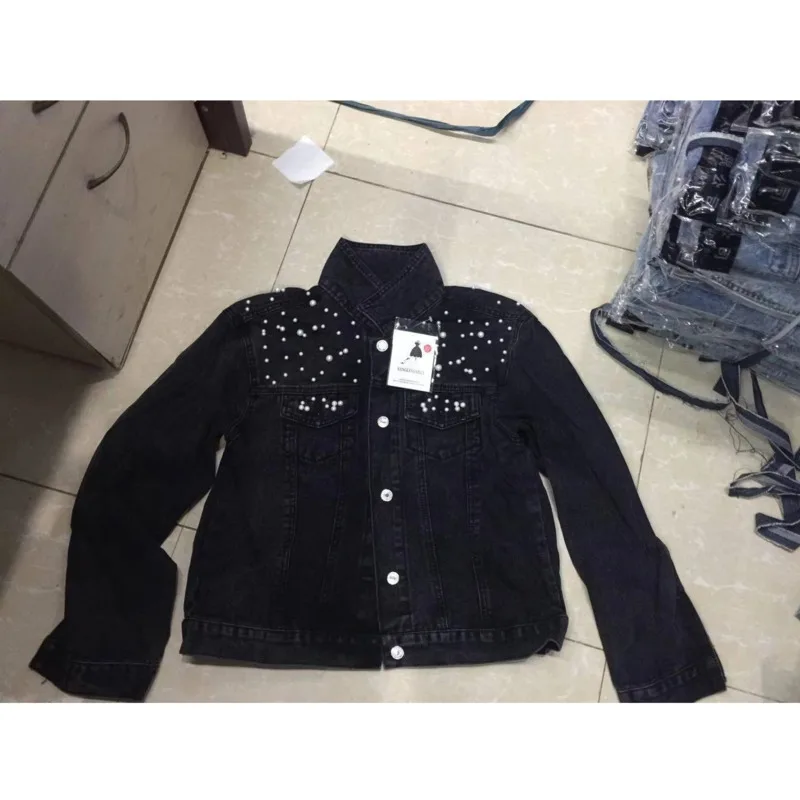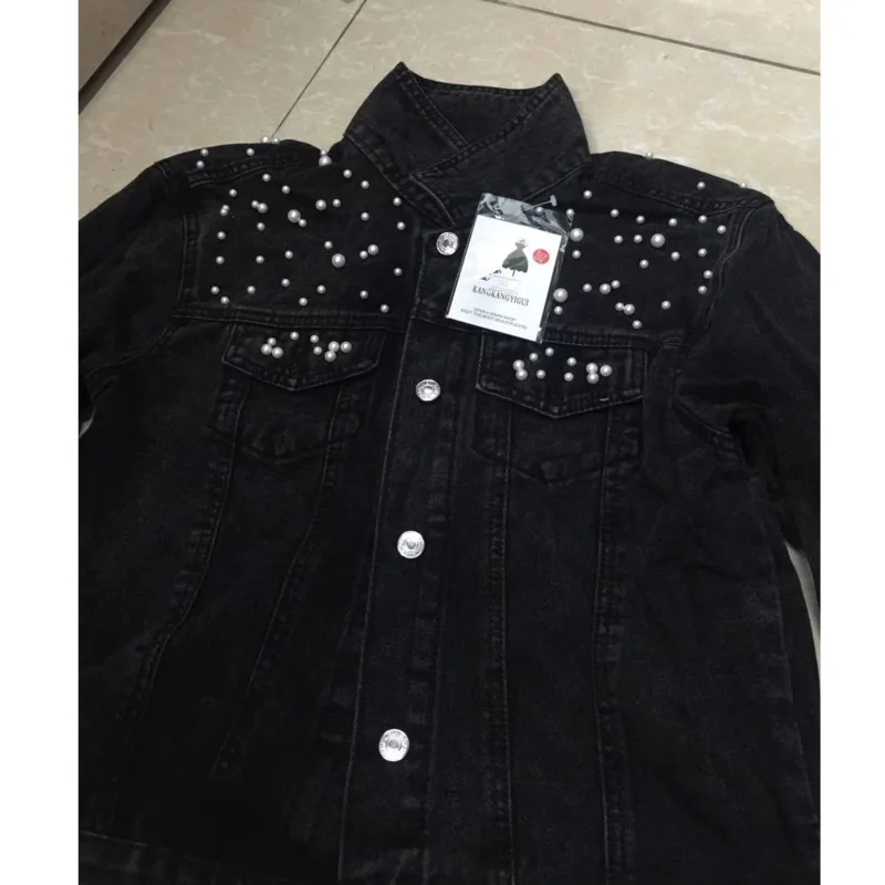 Женская джинсовая куртка с длинным рукавом, свободная джинсовая куртка на пуговицах с коротким лацканом и жемчужинами, весна-лето 2021