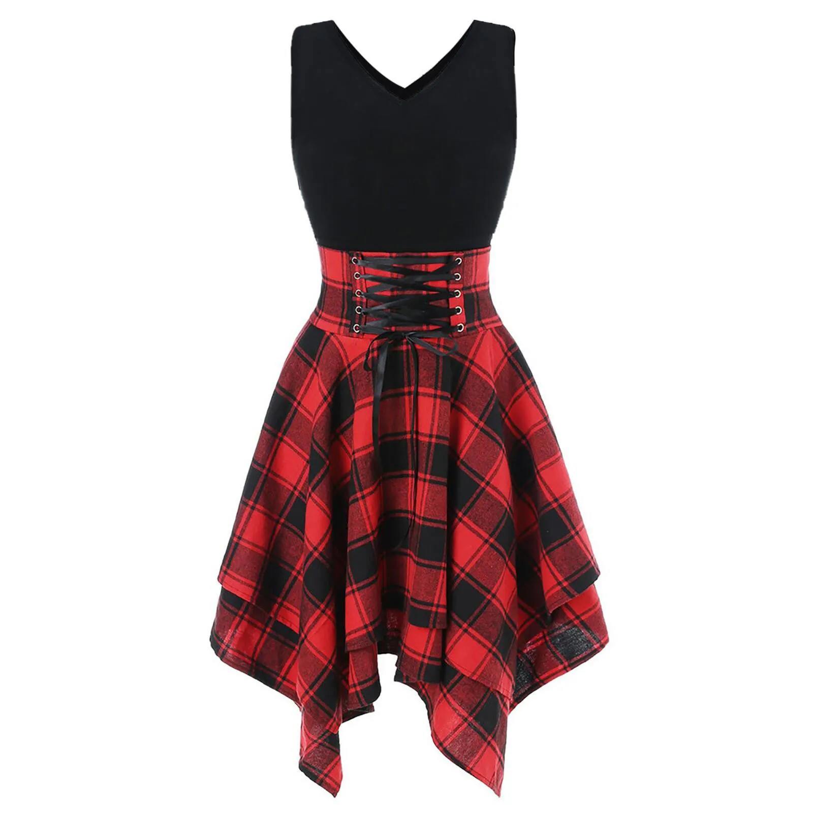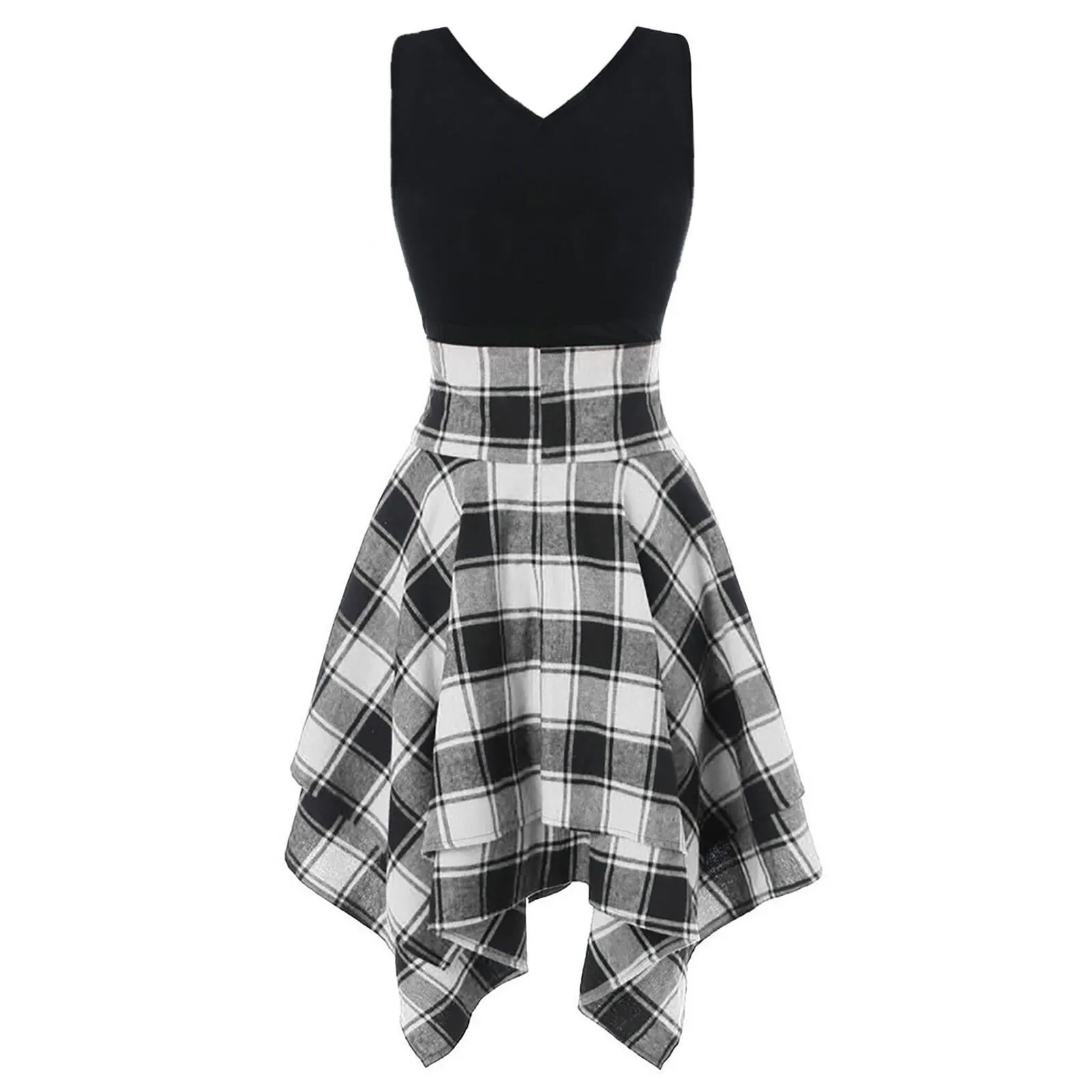 Платье женское, летнее, в клетку, с коротким рукавом, АСИММЕТРИЧНЫМ ПОДОЛОМ