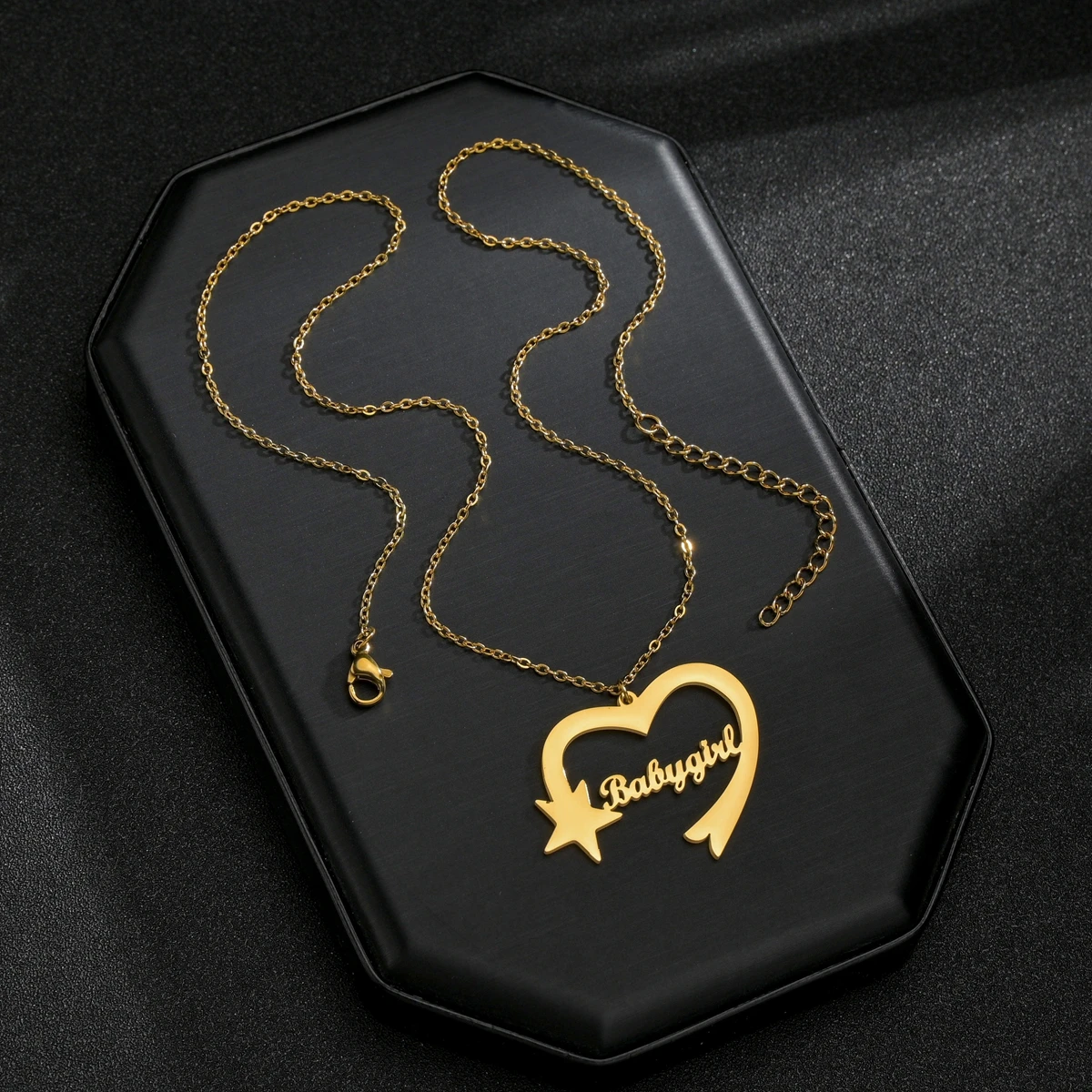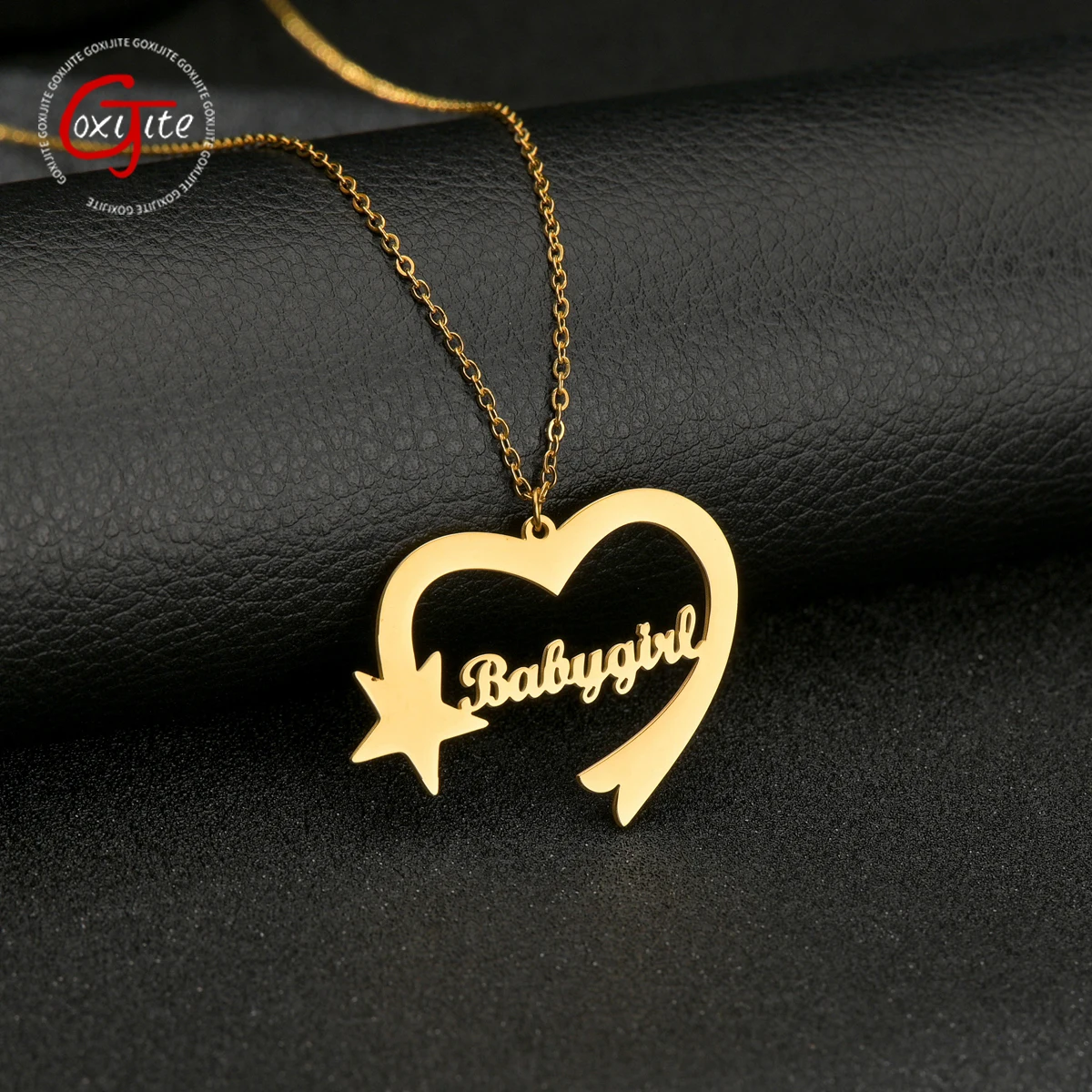 Модное ожерелье Goxijite с именем сердца для женщин, персонализированное ожерелье из нержавеющей стали с именной табличкой и звездами, лучший подарок
