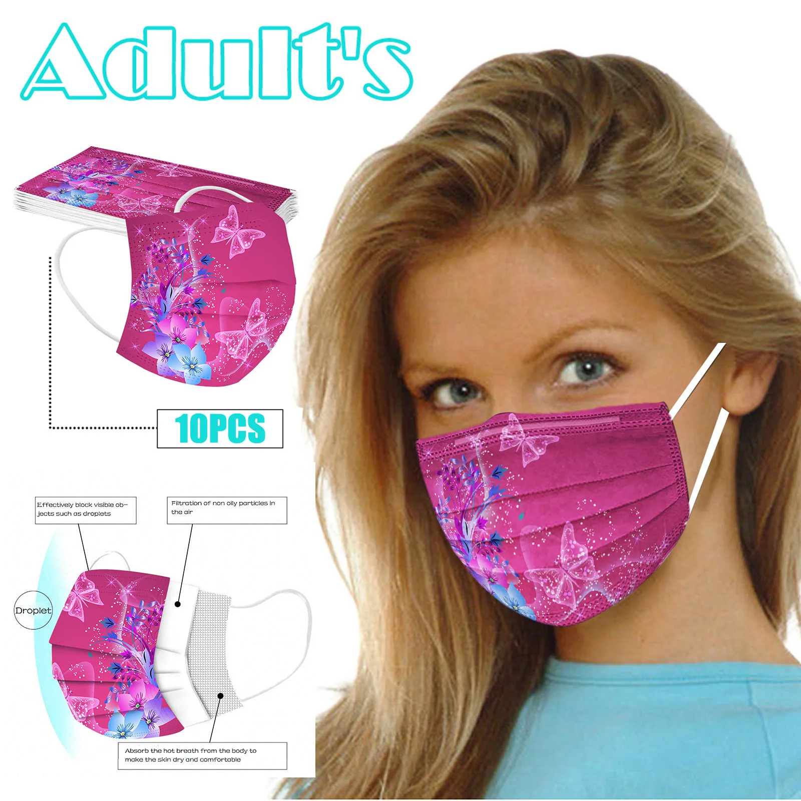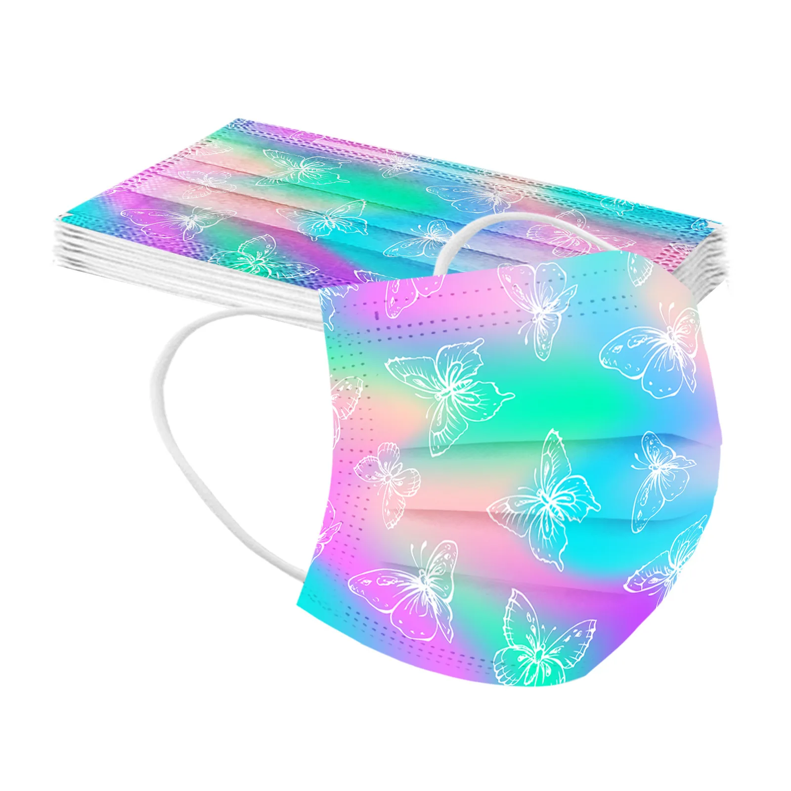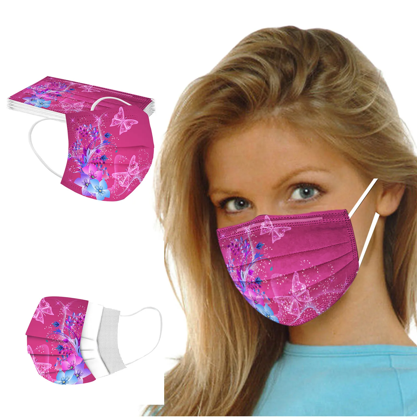 1050 шт в наборе, вареный Уход за кожей лица маска для взрослых Для женщин человек красочными бабочками и бантиками; Напечатанная одноразовая маска для лица 3ply петли уха Уход за кожей лица туши для ресниц