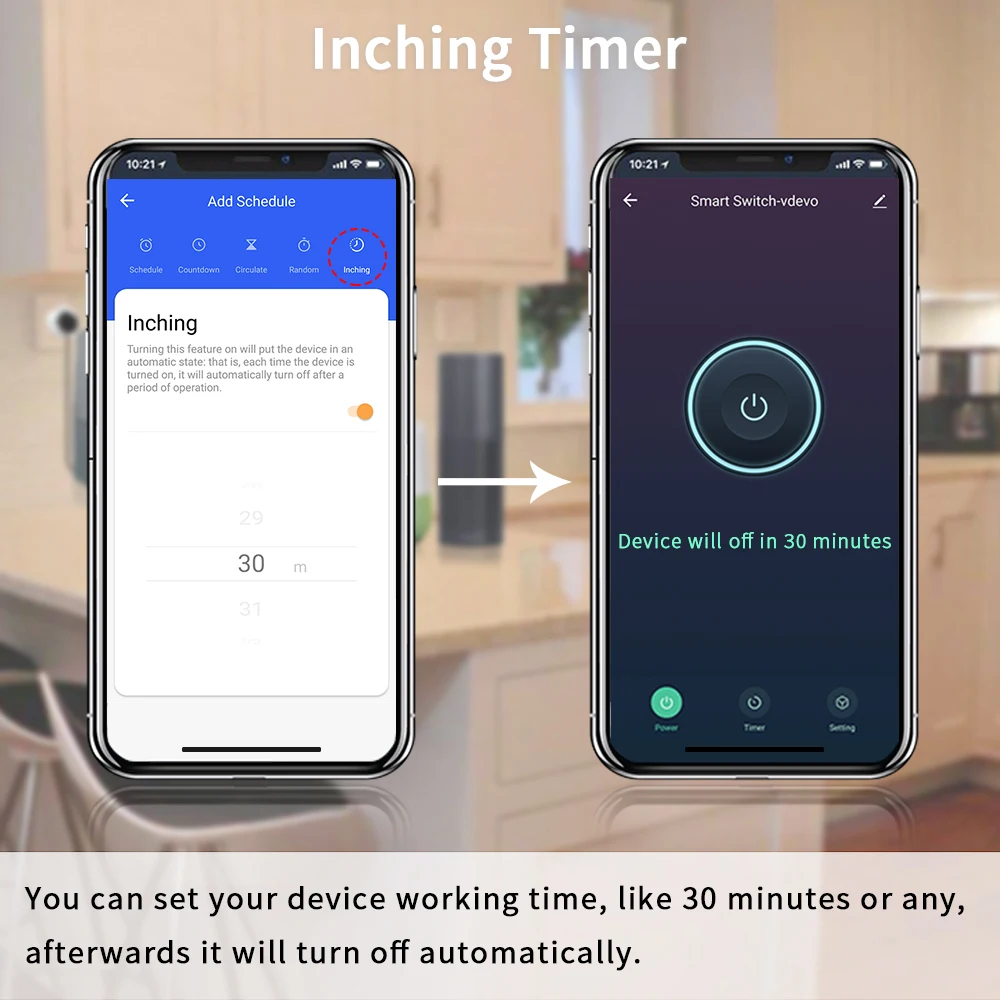 -Вы можете установить время работы вашего устройства, например, 30 минут или любой другой, после этого он автоматически отключается каждый раз после того, как вы его включите. -Никаких хлопот в жизни с функцией inching time. Вы просто включаете устройство, не нужно беспокоиться о том, что забудьте выключить устройство.