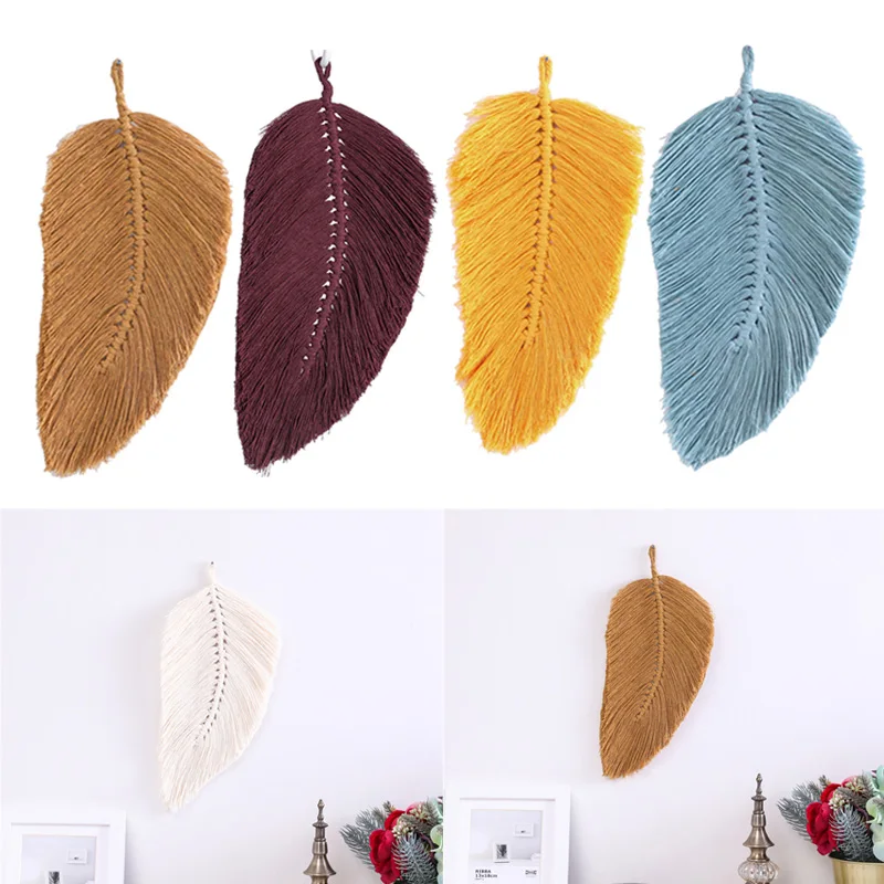Настенный Гобелен из хлопкового шнура в стиле бохо, с листьями и пером, в скандинавском стиле