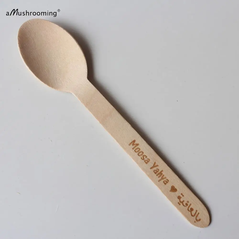Одноразовые деревянные ложки для кексов, десертов, на заказ, гравированная лазером древесина иврит, арабское сердце, оптовая продажа