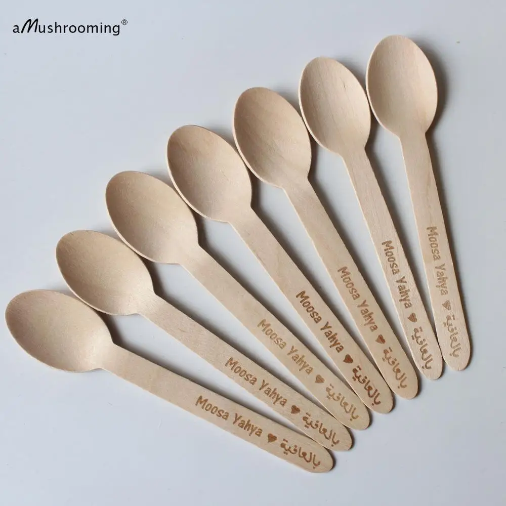 Лазерная Гравировка Персонализированные Одноразовые деревянные ложки