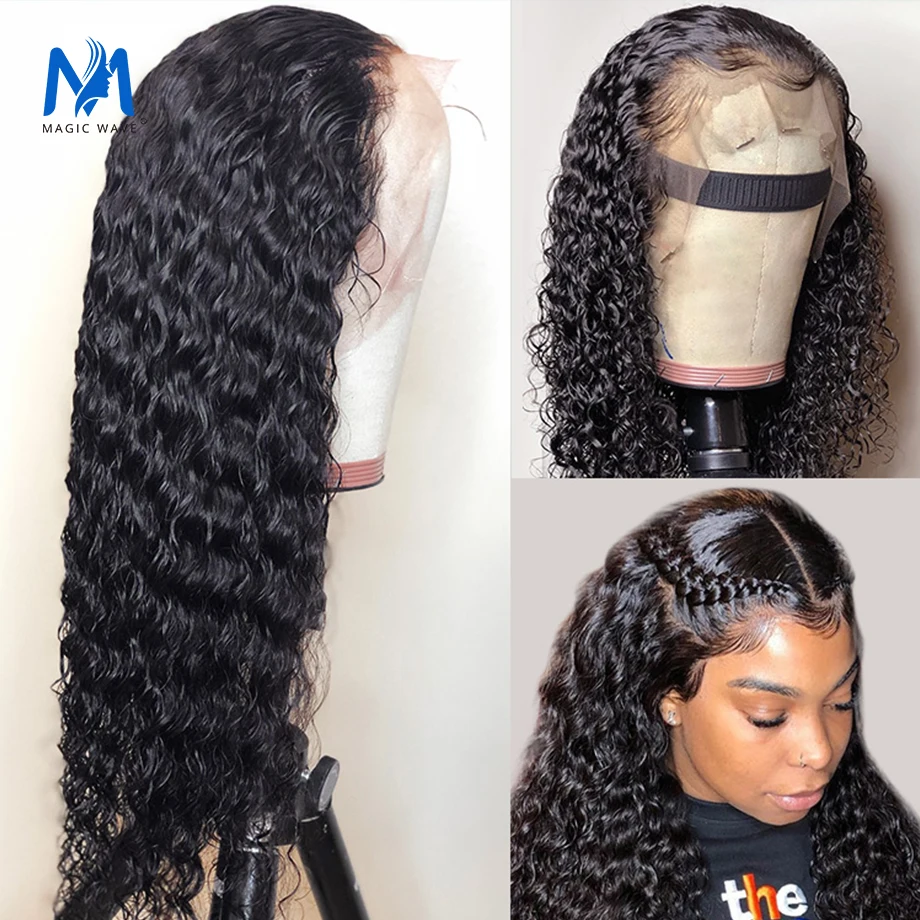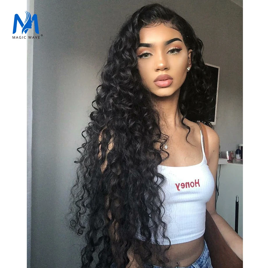 Волшебная волна 13x4, глубокая кудрявая кружевная фронтальная линия, 28, 30, 38, 40 дюймов, парики из человеческих волос 180, плотность 250, длинные кудрявые волосы Remy, фронтальные парики на сетке