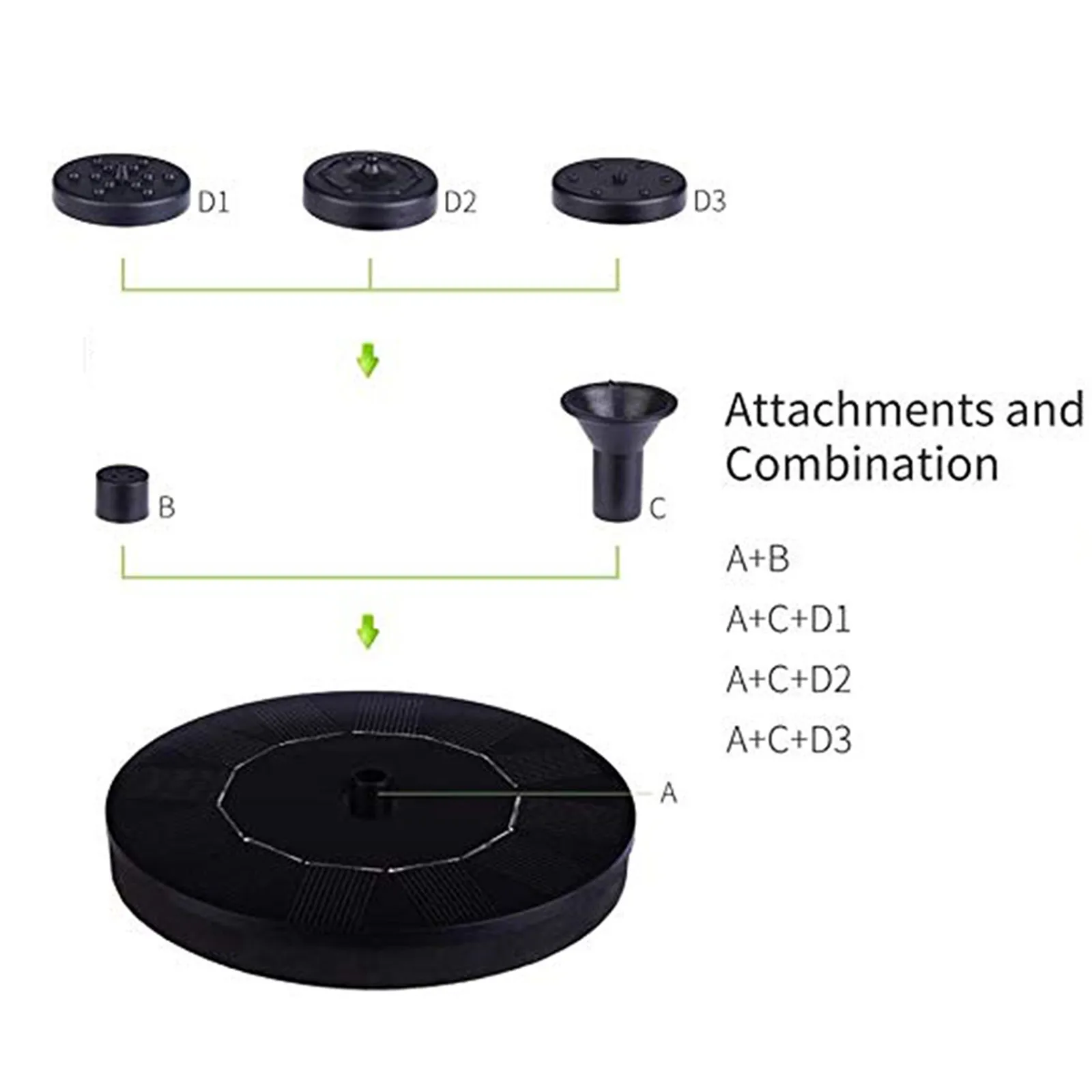 Плавающая и погружная функция: Выберите плавать или погружать этот фонтан на солнечной батарее под воду, подходит для птичьих ванн, аквариумов и/или небольшого пруда