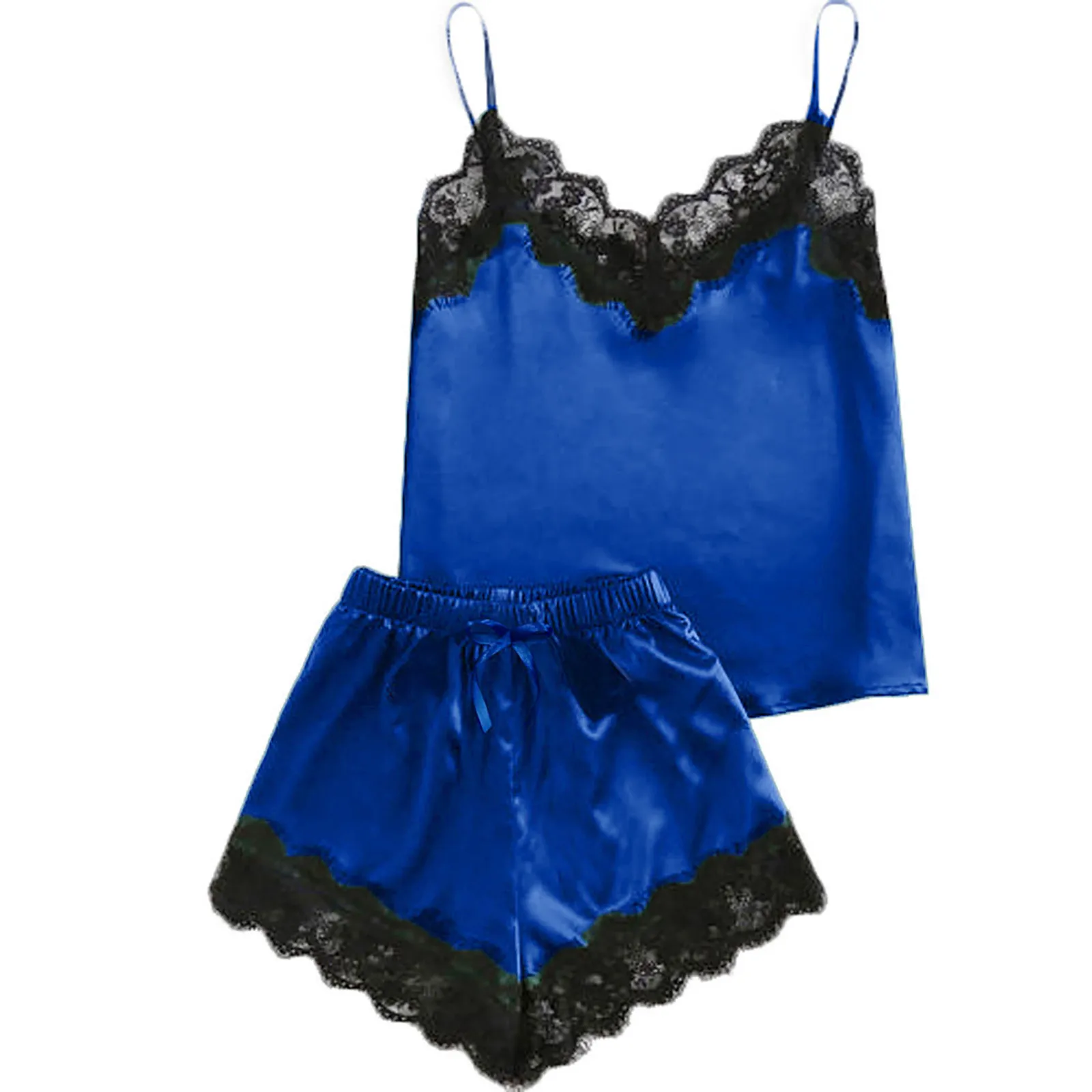 Женский пижамный комплект, атласная кружевная Пижама на бретельках,...