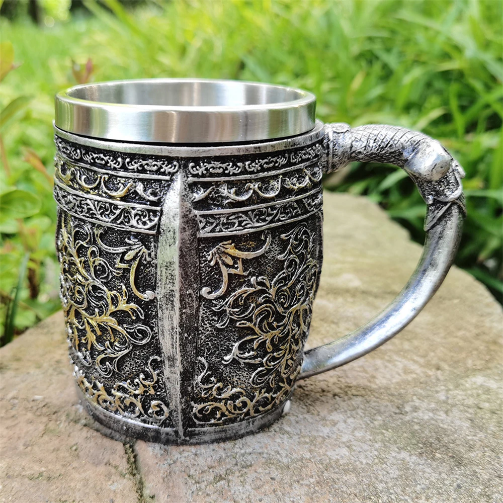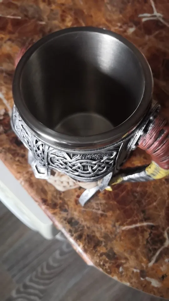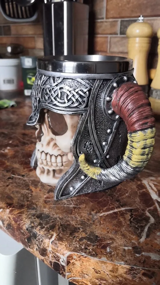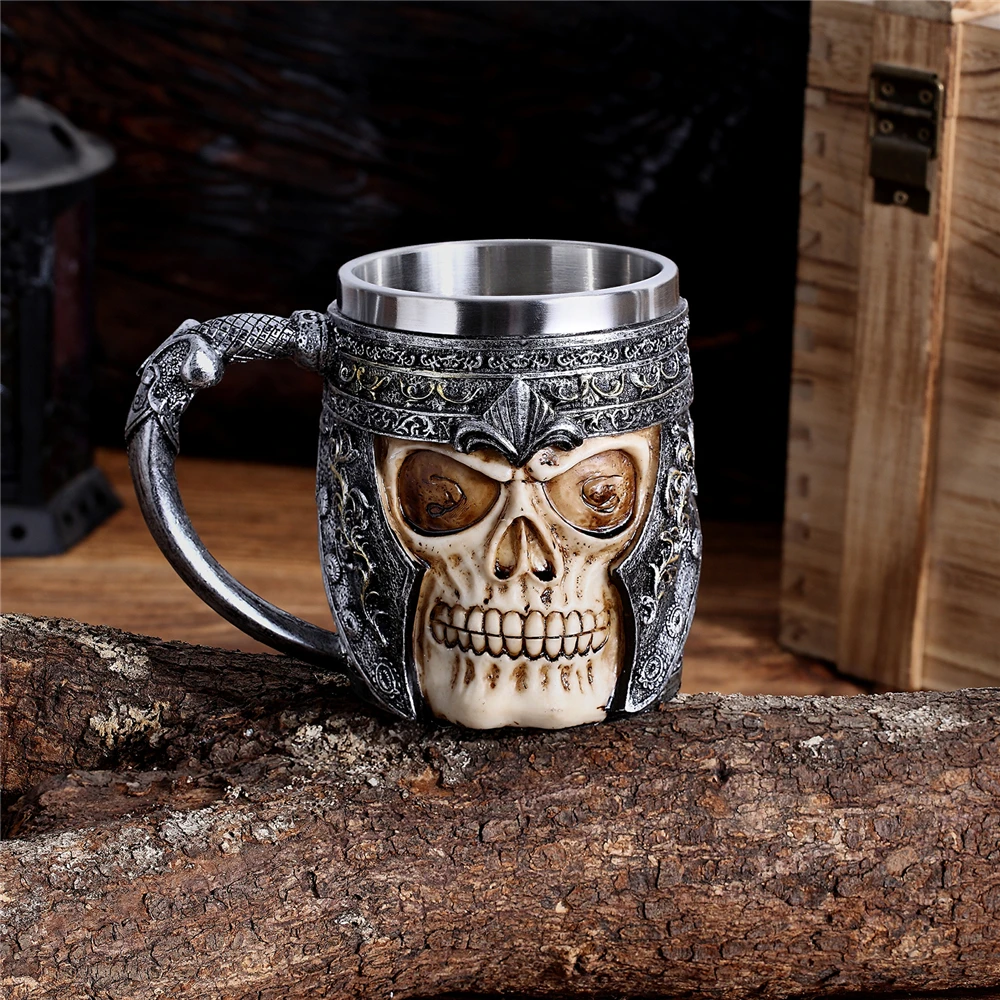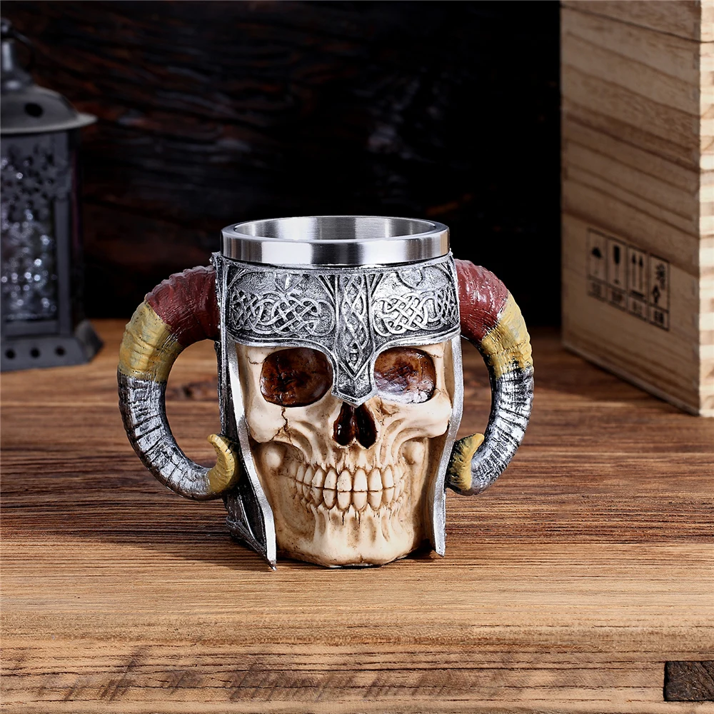 Кружка для пива в стиле викингов, двойной череп из нержавеющей стали, металлическая кружка для воинов, украшение для питьевой посуды