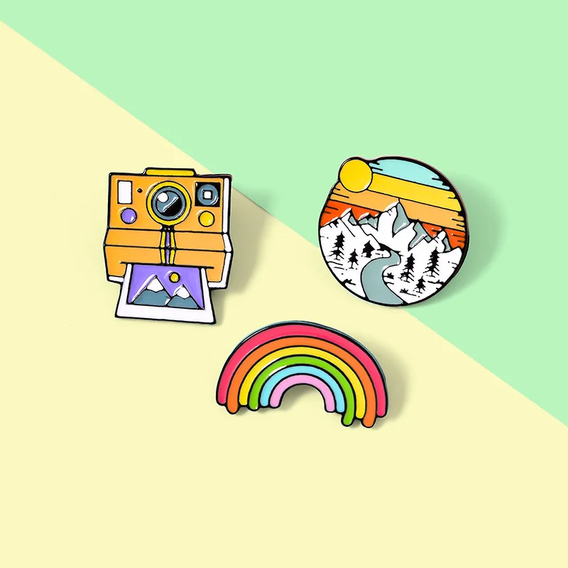 Радужная камера Снежная гора брошка мультфильм значок Радужная камера пейзаж отворот штырь студенческий мультфильм милый открытый штырь