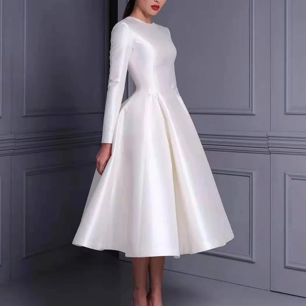 Платье свадебное короткое ТРАПЕЦИЕВИДНОЕ с круглым вырезом, карманами и молнией на спине