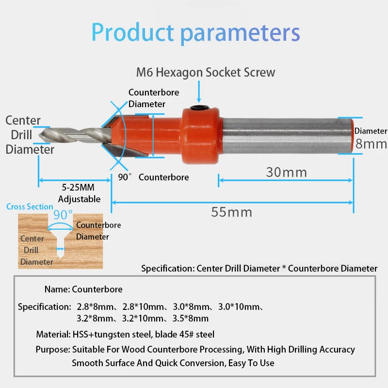 Бесплатная доставка 8-10 мм набор фрез из быстрорежущей стали с круглой ручкой для деревообработки Зенковка фреза потайное сверло набор винтов для фрезы по дереву