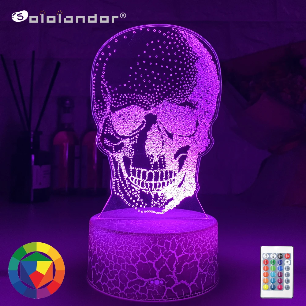 Новейший Удивительный 3d-ночник с черепом, светодиодный USB-светильник, Хэллоуин, Каратель, настроение, красочный испуганный тематический свет, домашнее украшение