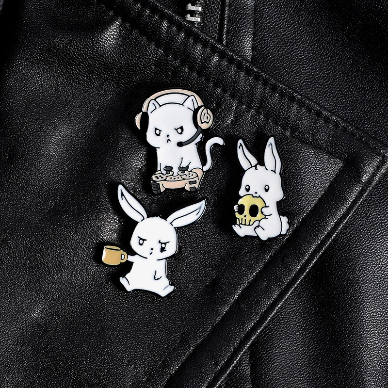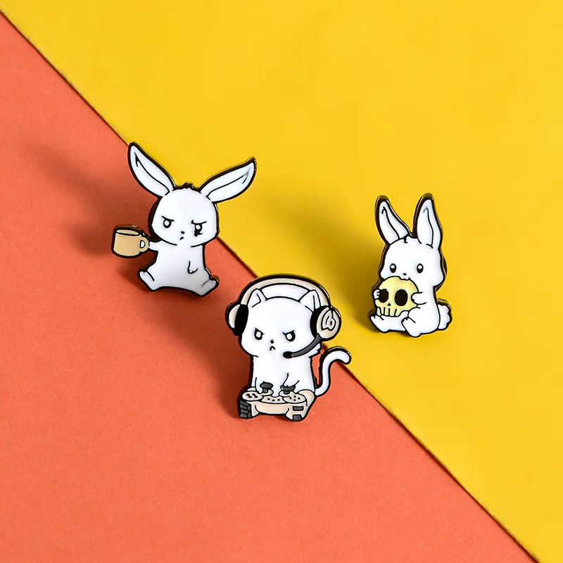 Милый мультфильм кролик брошь кролик игра череп кофе значок студент кролик брошь череп животное брошь
