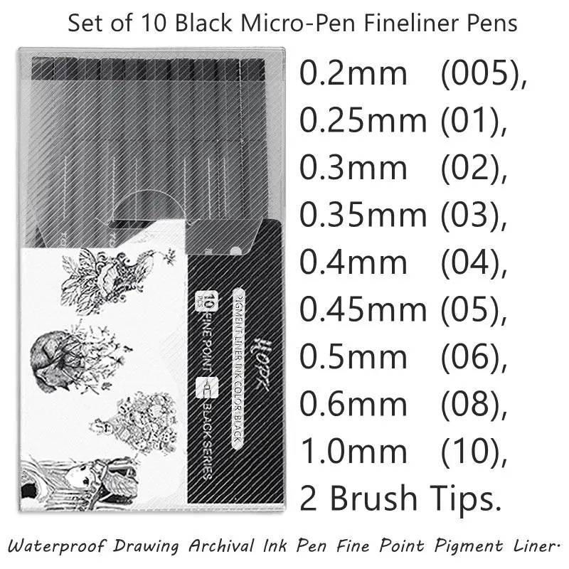 Пигментный лайнер, 10 шт.компл., Микронная чернильная маркерная руч...