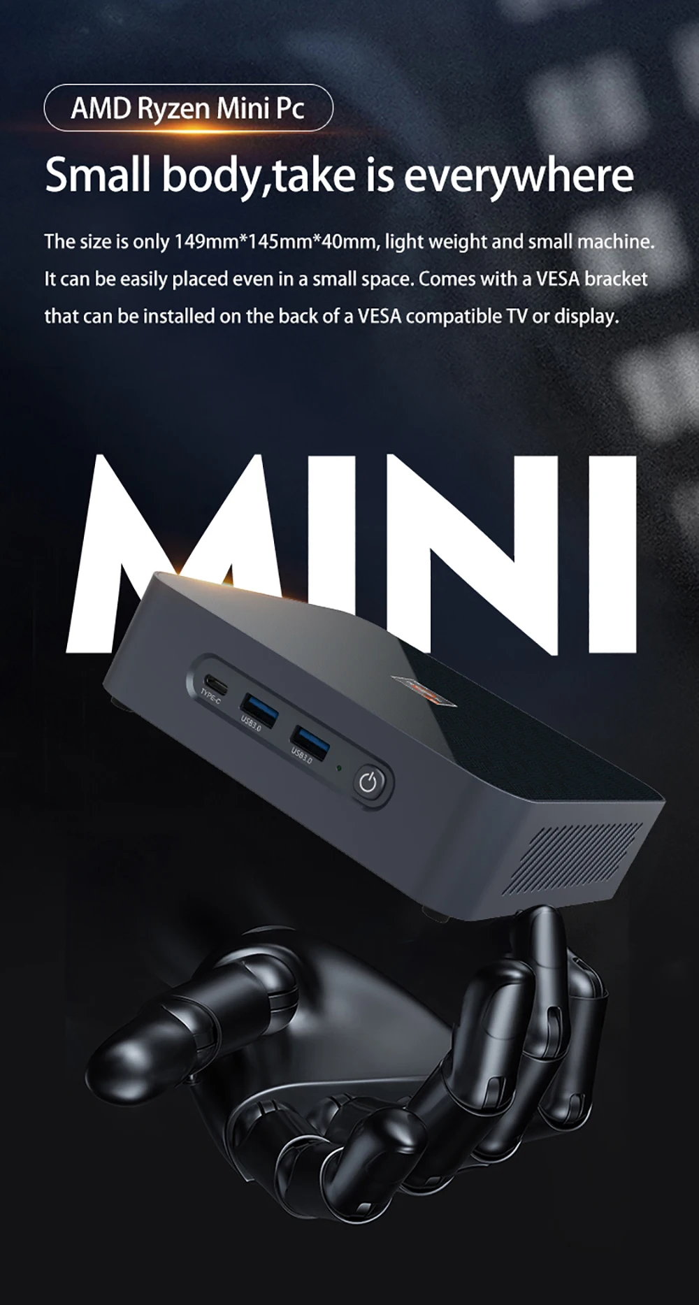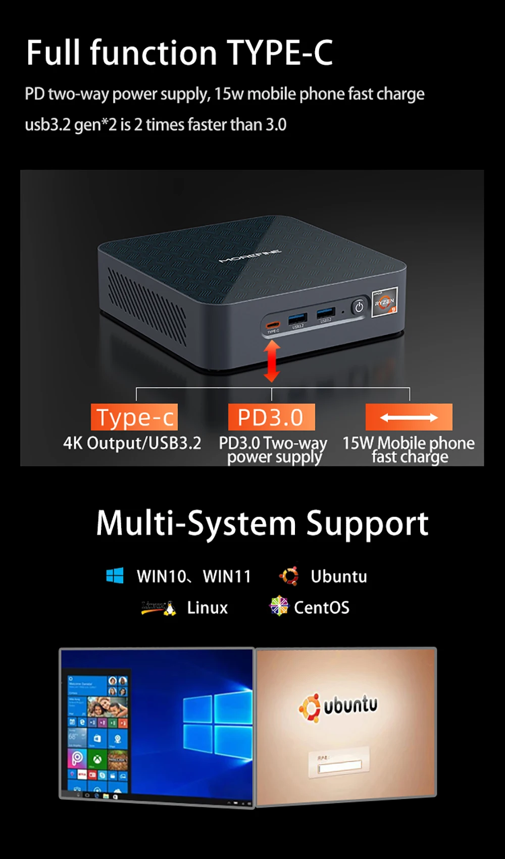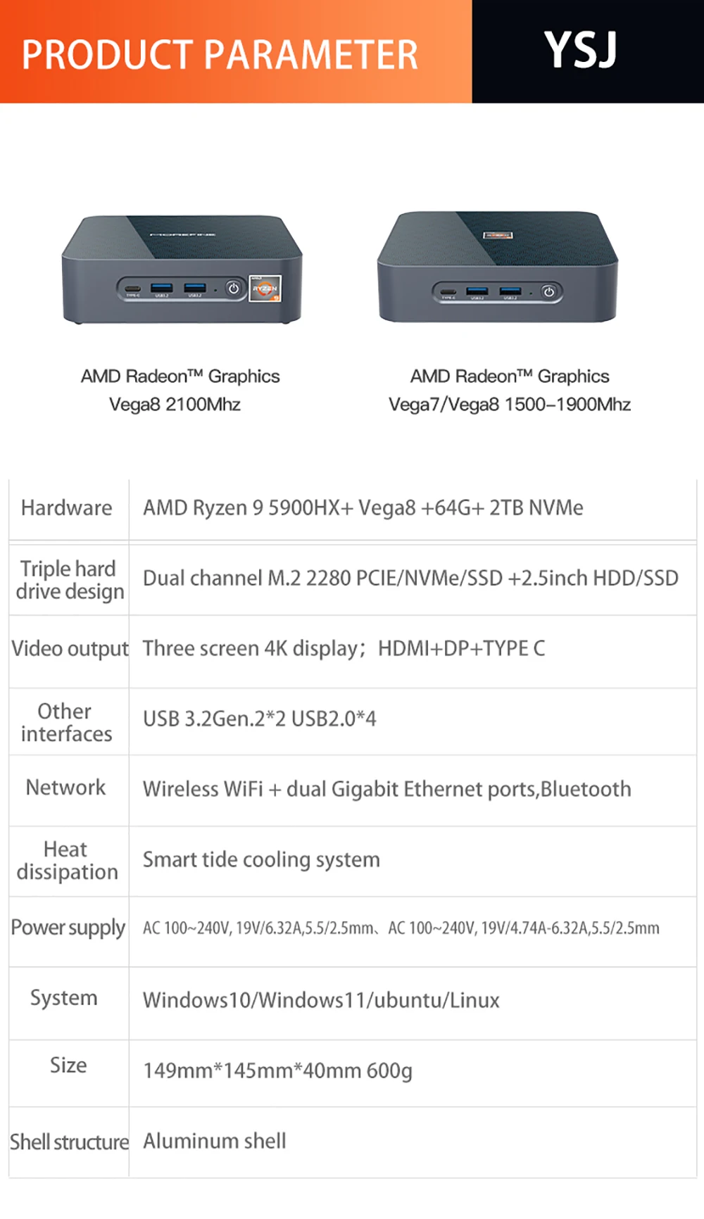 Мини-ПК игровой, 7 нм, AMD R9 5900HX R7 5700U R5 5500U, Win10, 2 * DDR4, 64 ГБ, 2 * M.2 NVME TPM2.0 HDMI 2,0, DP1.4, Type-C, 3x4K