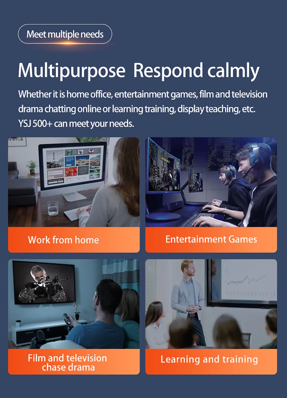 -Поддержка HDMI2.0, DP1.4 и Type-C для 3x4K @ 60 Гц синхронно иСинхронно.