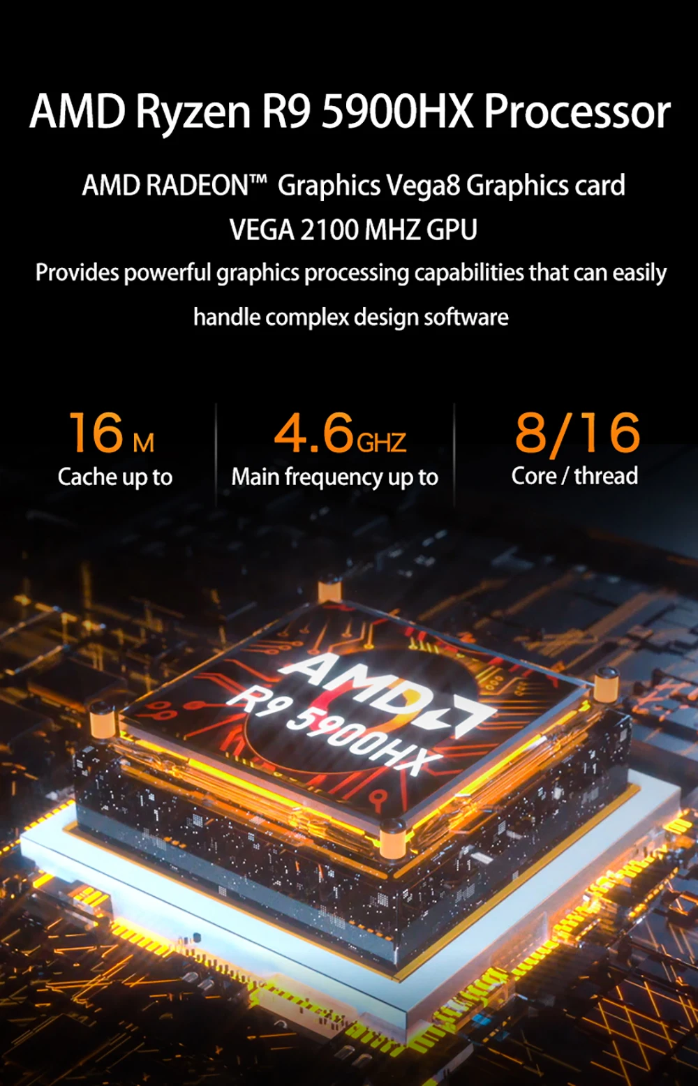 -Встроенный высокопроизводительный процессор AMD Ryzen 5000 серии 7nm с мощной производительностью вычислений.