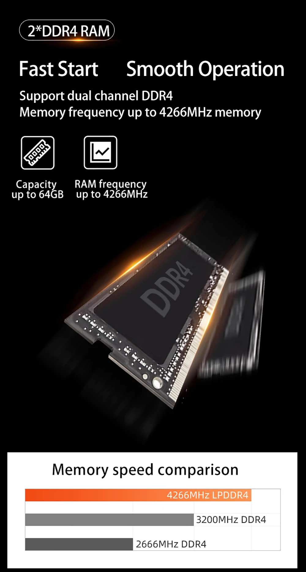 -2xSODIMM DDR4 слот памяти объемом до 64 ГБ, большая емкость и высокая частота памяти повысить эффективность работы и дает вам приятный опыт.