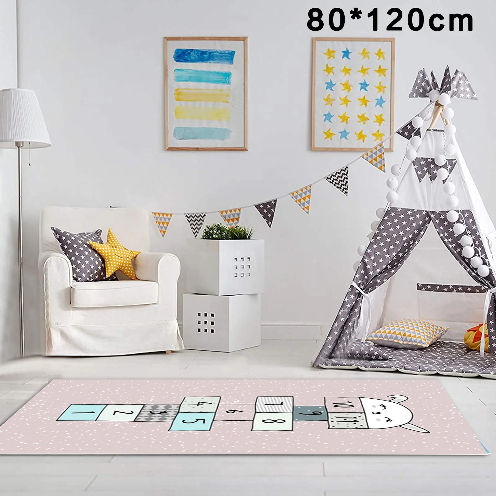 Симпатичный коврик из полиэстера hopски, детская комната, нескользящий коврик и напольный коврик, детский игровой коврик для лазания, утолщенный ковер для гостиной # W