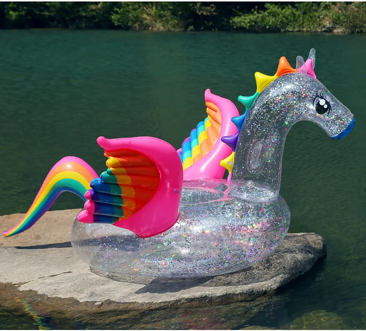 Feature 6Giant Colorful Glitter Inflatable Rainbow Unicorn Pool Float