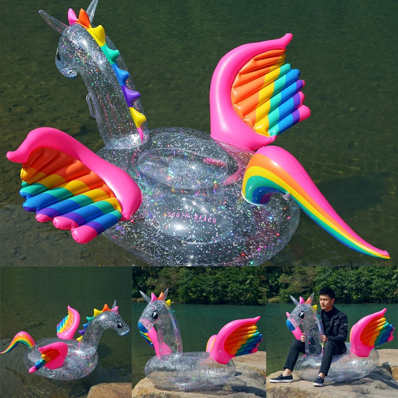 Feature 8Giant Sparkly Unicorn Inflatable Pool Float Colorful Glitter Swimming