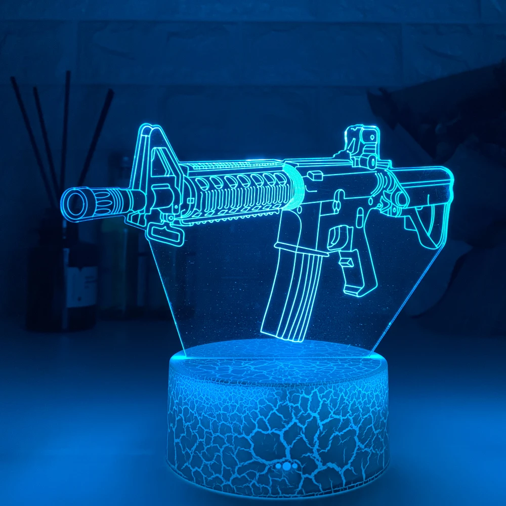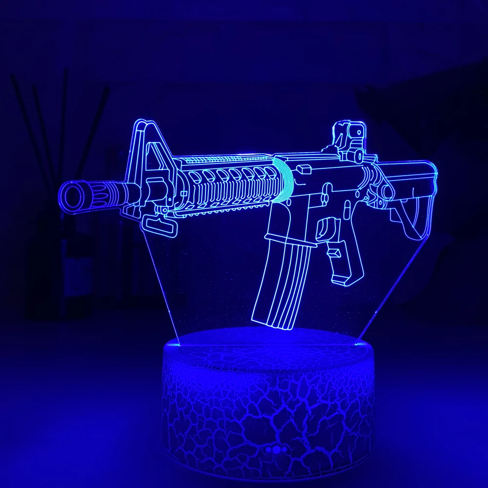 Ночной светильник игровое оружие M4, светодиодный ночсветильник с сенсорным датчиком, меняющий цвет, для кабинета, кровати, декор для детской комнаты, для мальчиков, подарок на день рождения, лампа