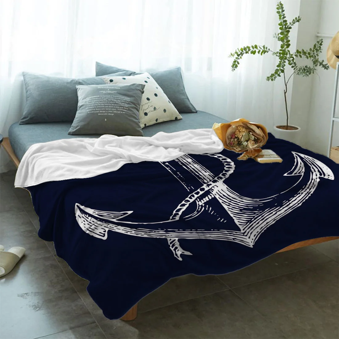 Простое одеяло с голубым низом и якорем, мягкое одеяло с забавным принтом для мальчиков и девочек, детское теплое Флисовое одеяло с навигацией, простыни для дивана и кровати