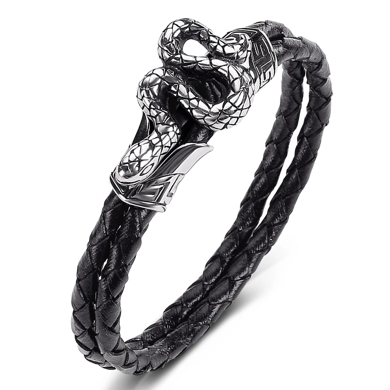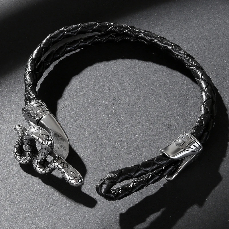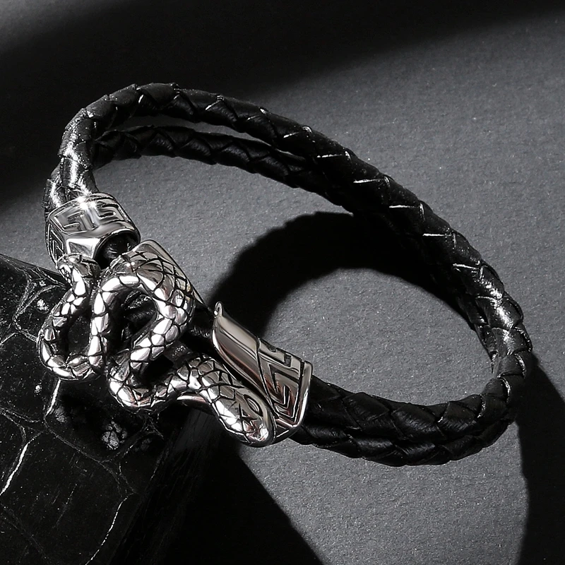Браслет мужской из натуральной кожи со змеиным принтом, P541