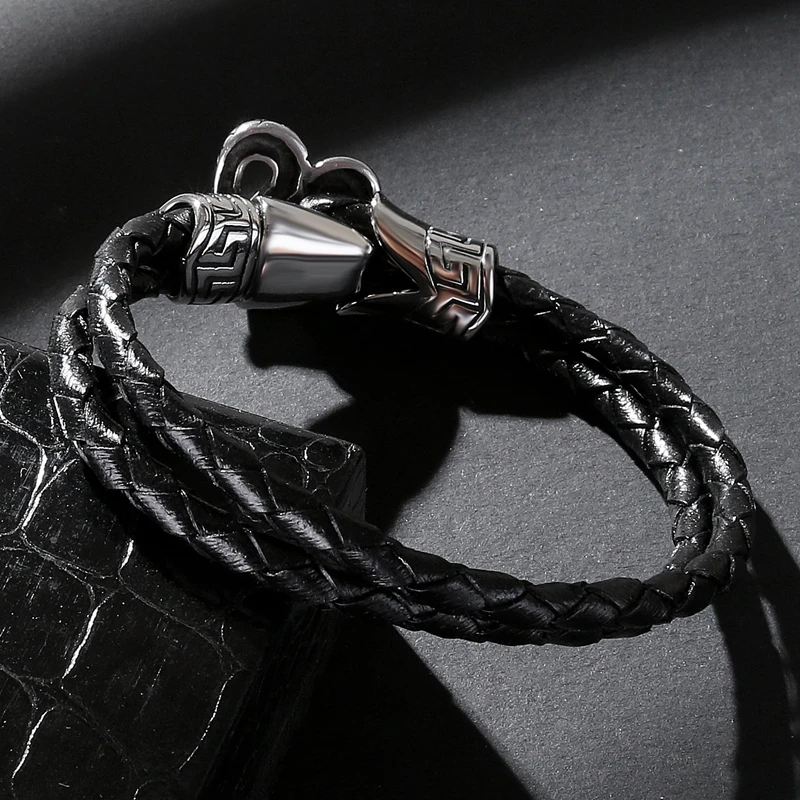 Браслет мужской из нержавеющей стали с двойной плетеной кожей, Ювел...