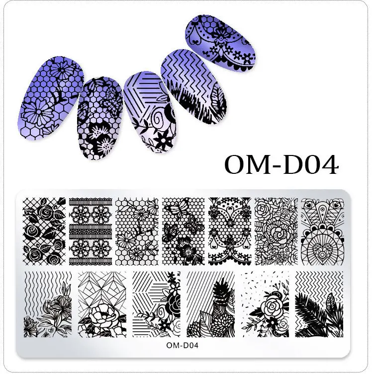 1 шт. дизайн ногтей декоративные передачи стальная пластина прямоугольный печатание масла к синяя пленка окрашенная листовая сталь OMD серии