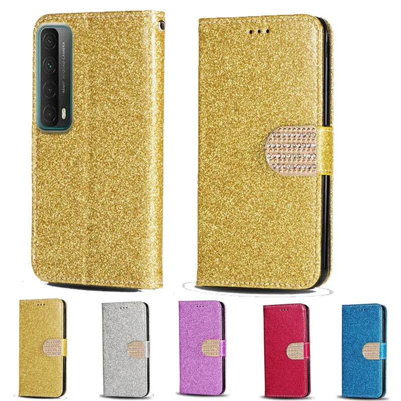 Роскошный кожаный чехол-бумажник с откидной крышкой и блестками для Huawei Y7a, чехол для телефона Huawei P Smart 2021 с отделением для карт