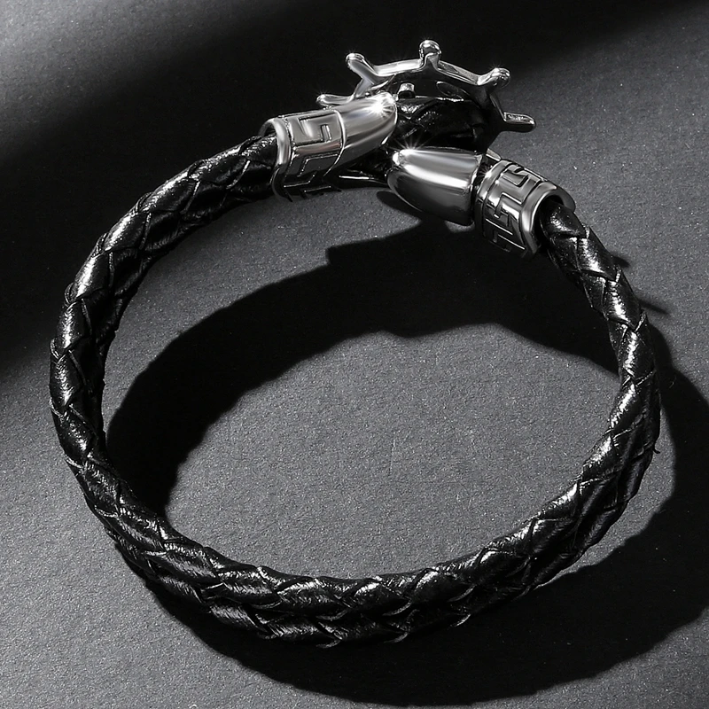 Мужской кожаный браслет в стиле панк-рок, из нержавеющей стали