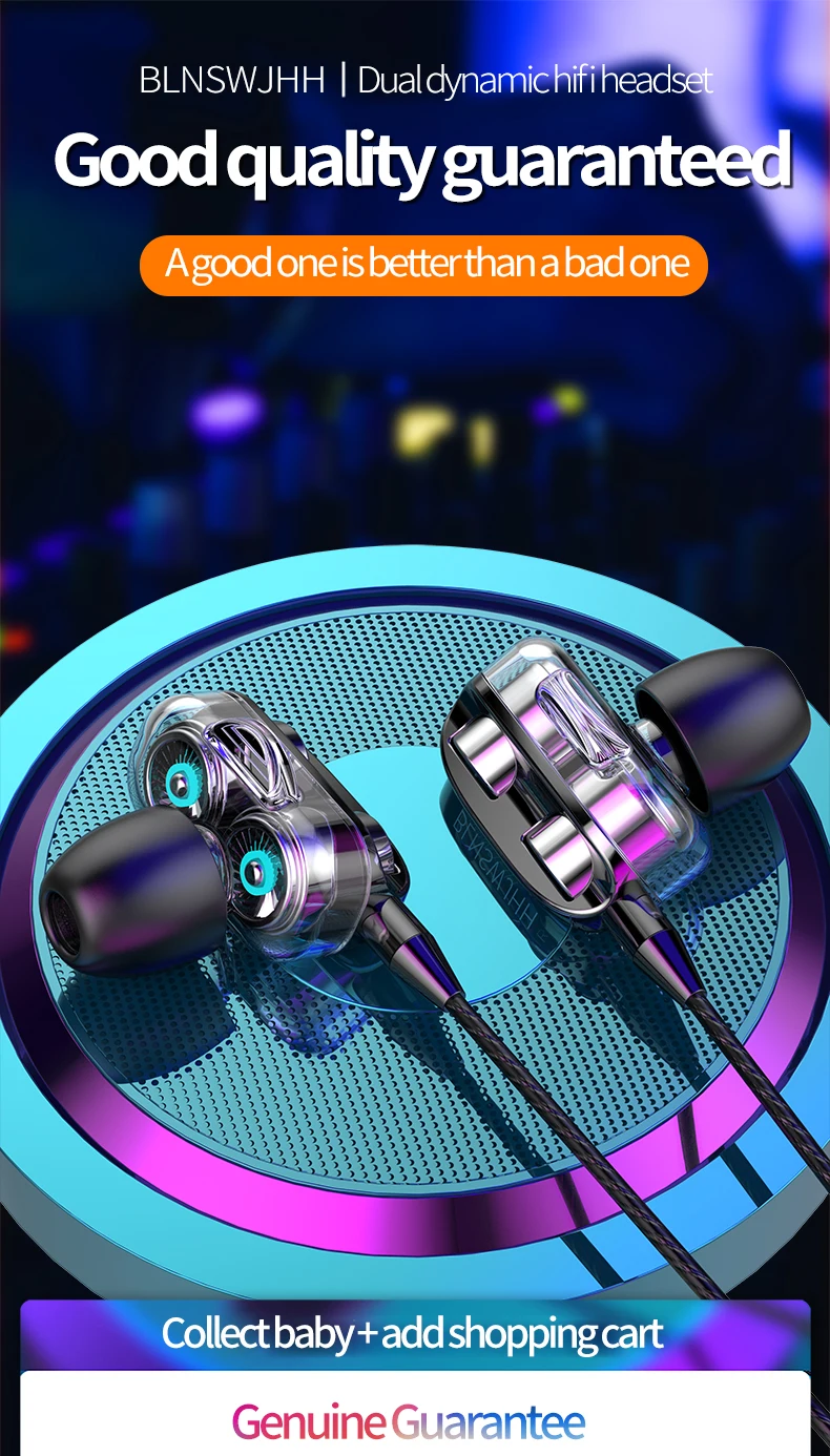 VAORLOBuy 1 Take 1 проводные наушники с двойным драйвером 3,5 мм Hi...