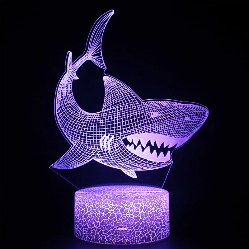 Акула тема акриловые светодиодные лампы 3D светодиодный светильник ...