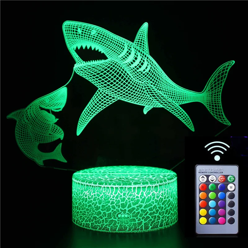 Лампа Акула с 3D иллюзией, 716 меняющихся цветов, ночник для украшения спальни, светодиодный ночсветильник, подарок на день рождения, Рождество, игрушки для детей