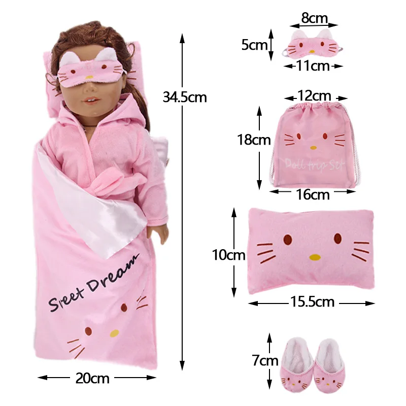 С принтом Китти Кэт кукольная Пижама, халаты, комбинезоны, спальный мешок, куртка-ветровка, подушка, маска для лица, тапочки Fit 18 дюймов 43 см для ухода за ребенком для мам для новорожденных поколение игрушек