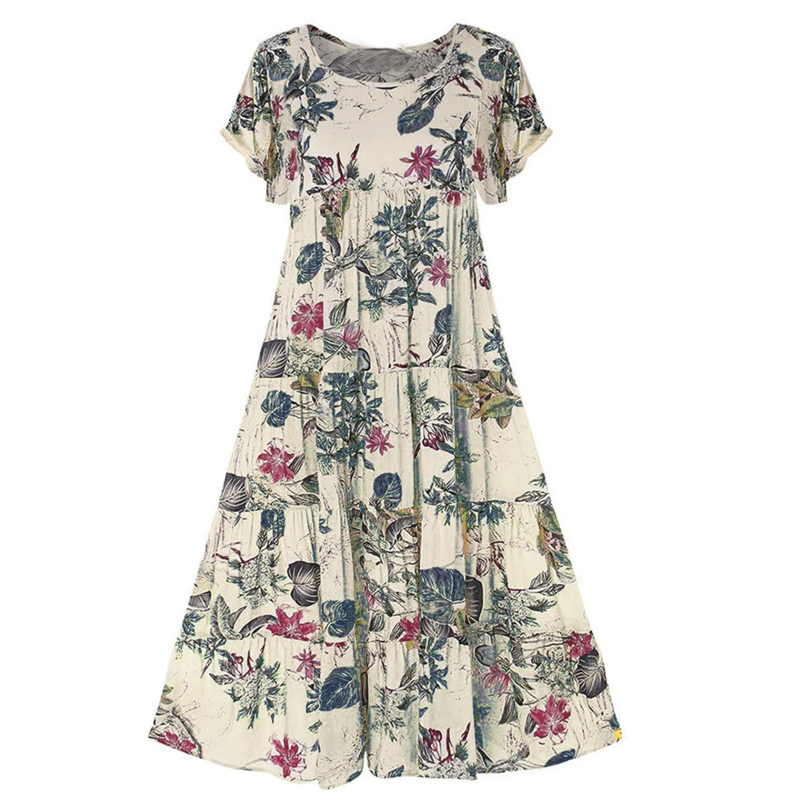 Платье женское длинное хлопково-льняное в стиле бохо, модное повседневное Свободное длинное с коротким рукавом, с цветочным принтом, в стиле ретро, лето 2021
