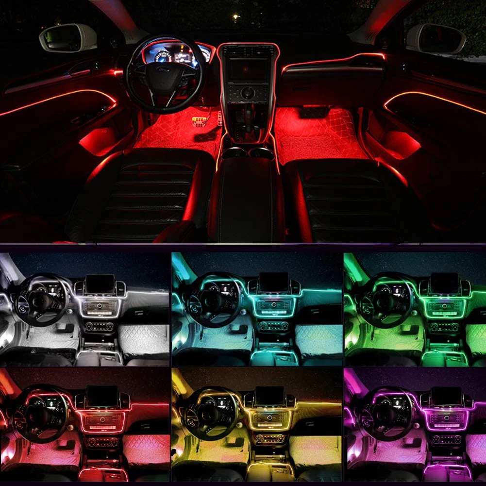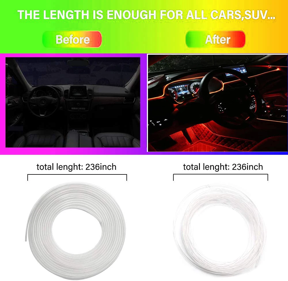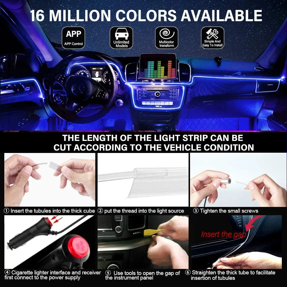 Универсальная Светодиодная лента 10 в 1 RGB с 8 м для внутренней отделки автомобиля, волоконно-оптическая светильник та с управлением через приложение, декоративные атмосферные лампы 12 В