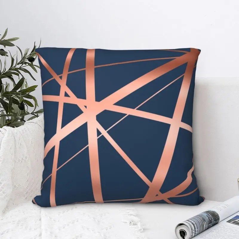 Военно-морской флот и Медь Luxe с геометрическим рисунком с абстрактным рисунком в виде накидки на подушки, Диван украшения в виде геометрических фигур квадратная Подушка Чехол 40x40