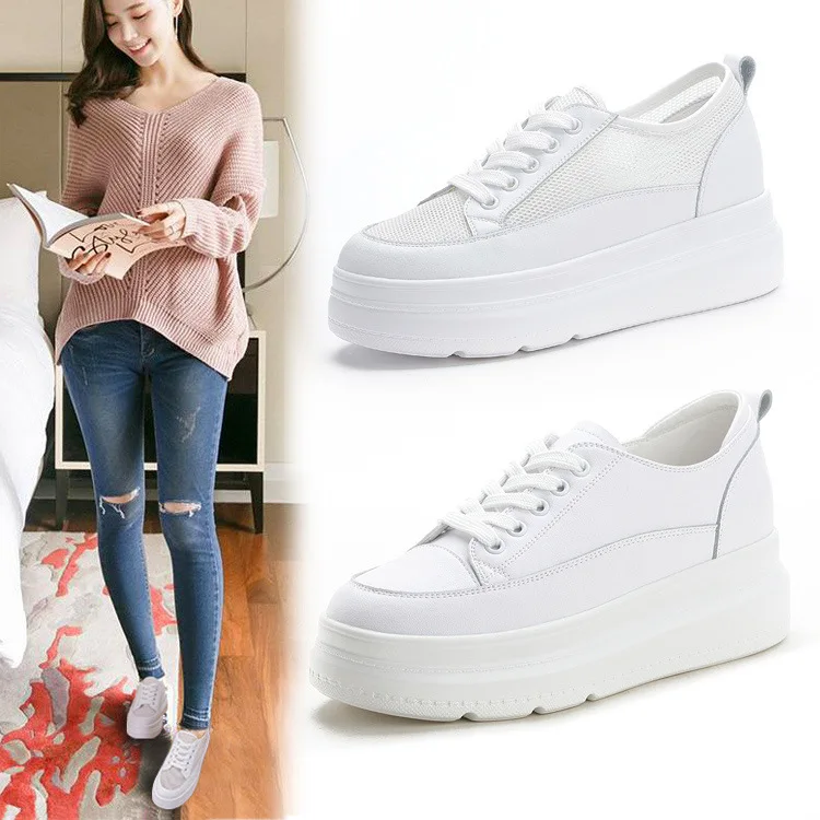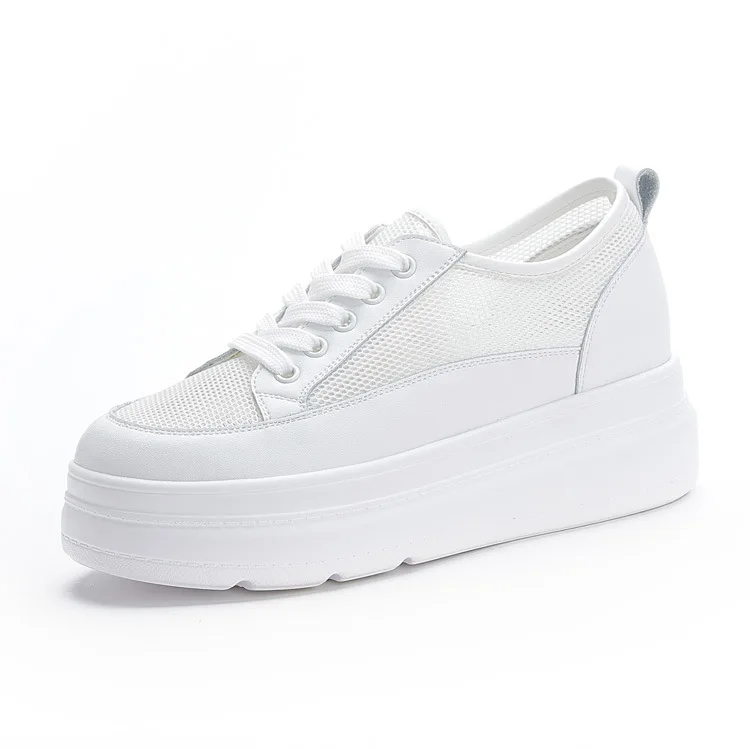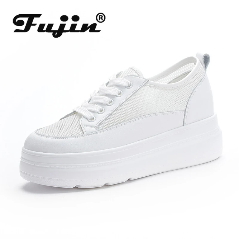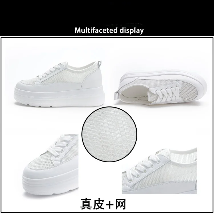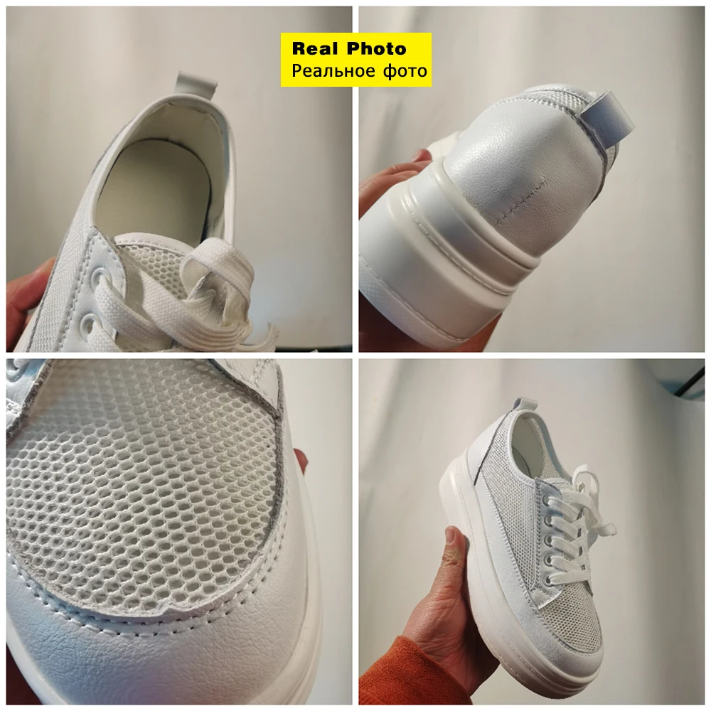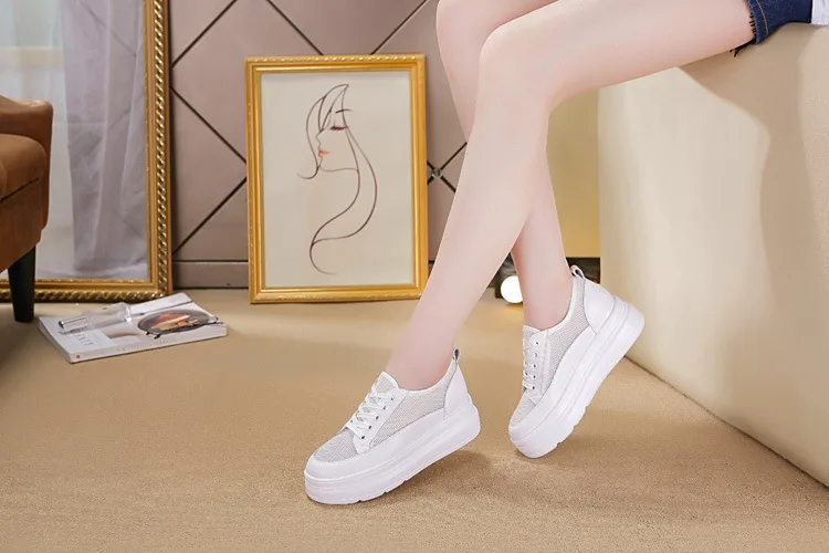 Fujinженские летние туфли на плоской платформе 6 см; Белые туфли из натуральной кожи с сетчатым верхом на толстой танкетке; Zapatos Para Mujer