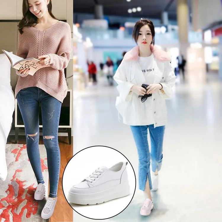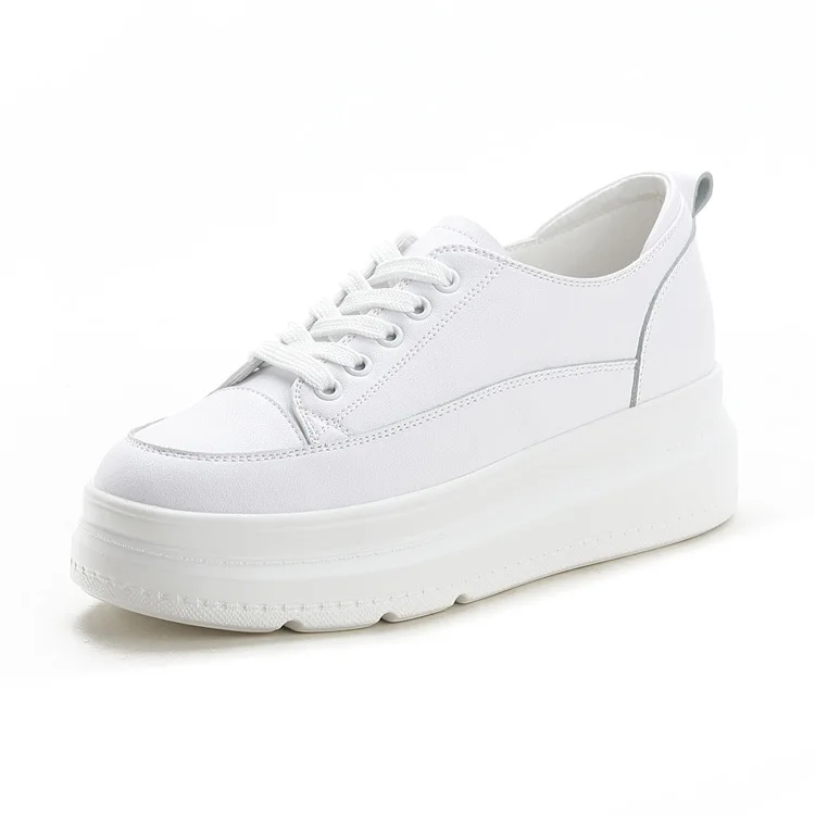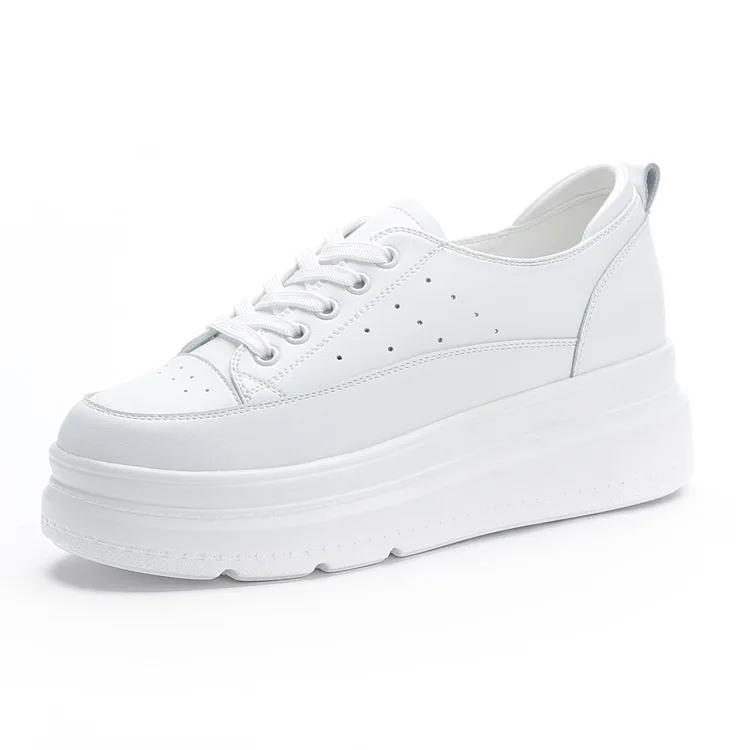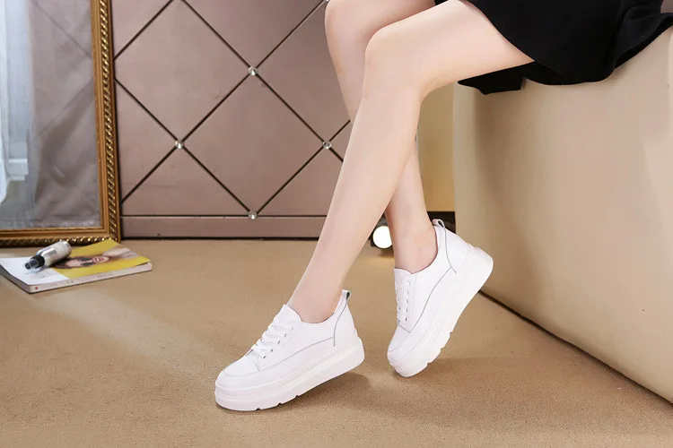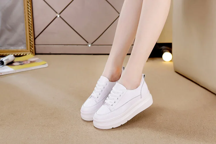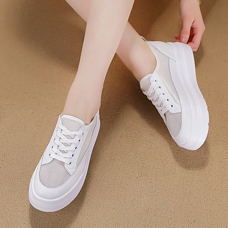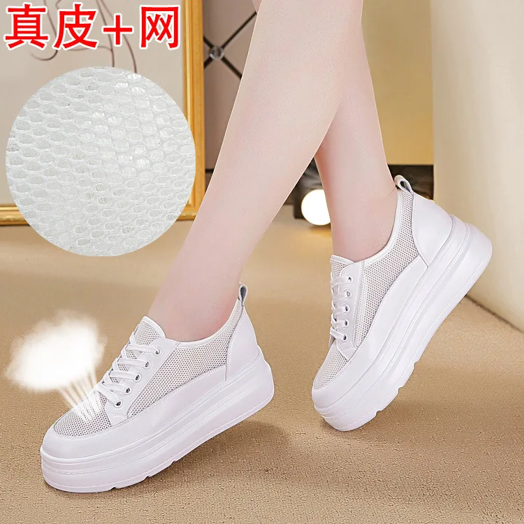 Fujinженские летние туфли на плоской платформе 6 см; Белые туфли из натуральной кожи с сетчатым верхом на толстой танкетке; Zapatos Para Mujer