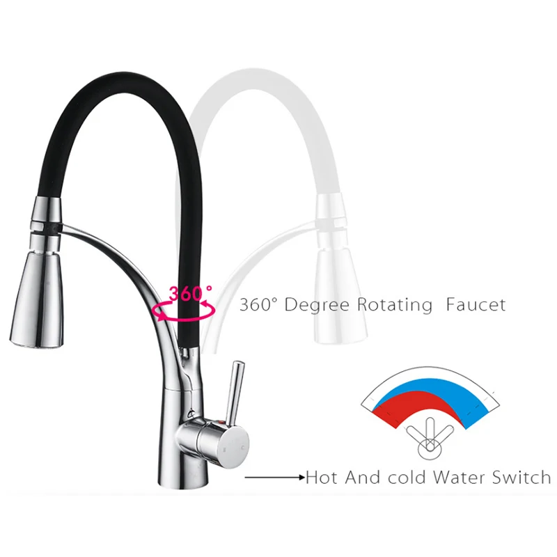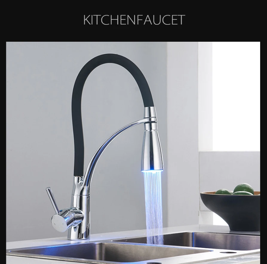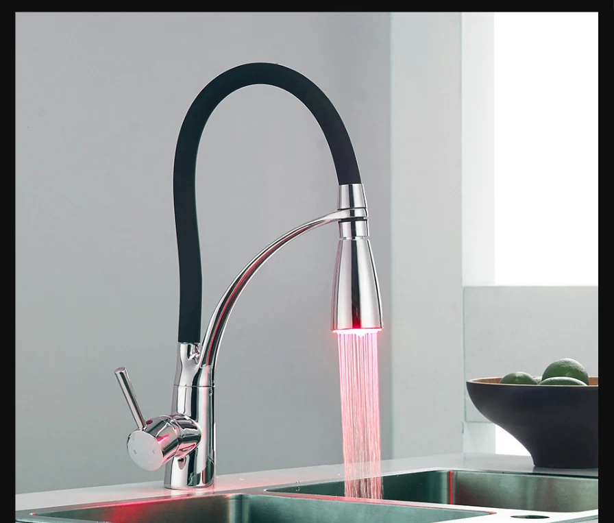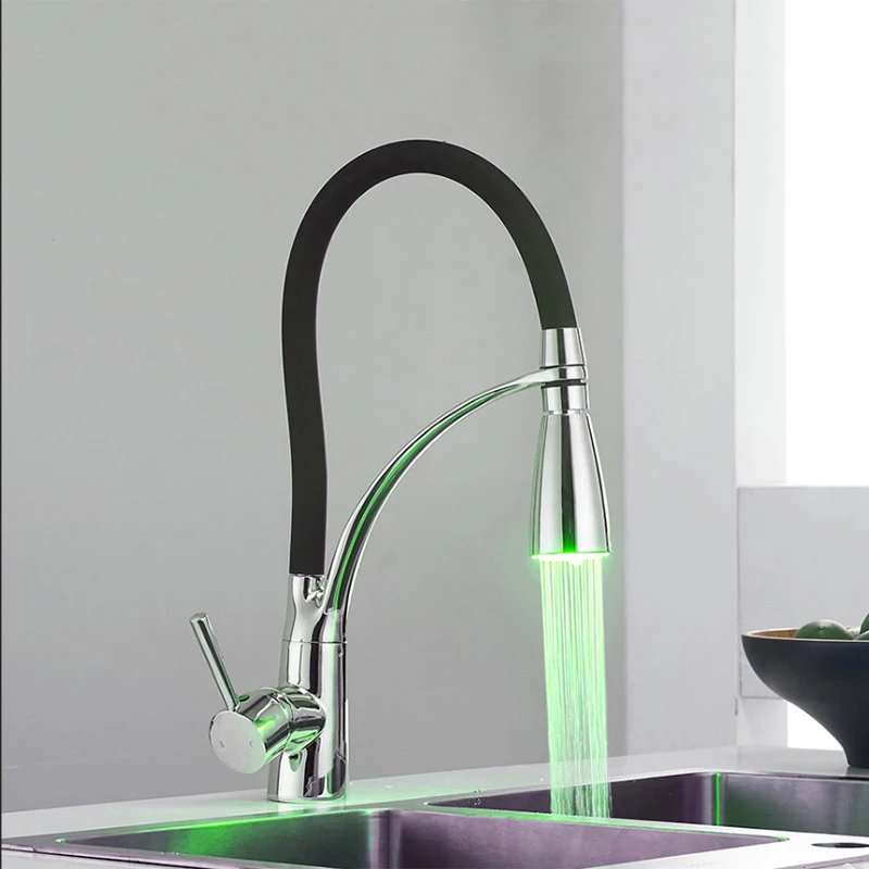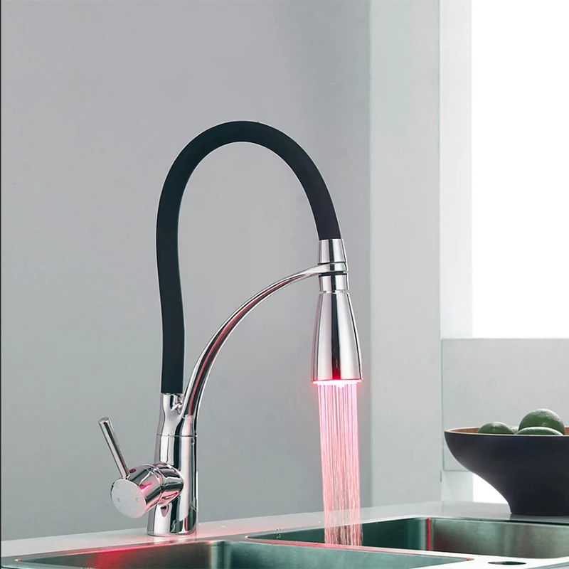 Светодиодный кухонный смеситель, выдвижной пружинный кран для раковины, для горячей и холодной воды, аксессуары для ванной комнаты, поворот на 360 градусов, одно отверстие