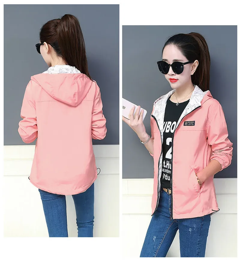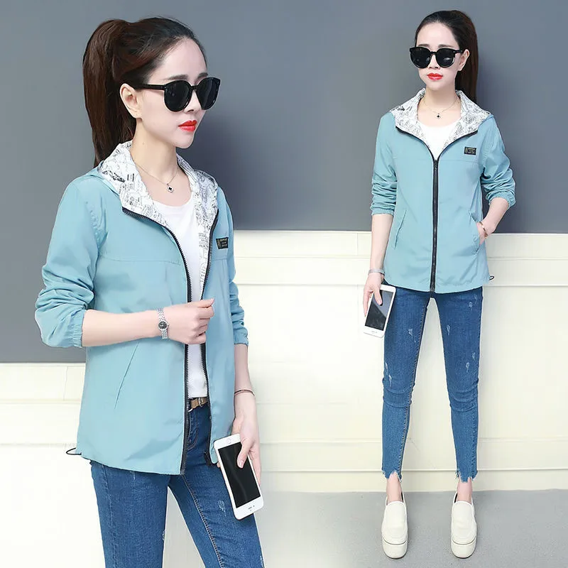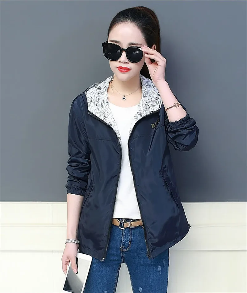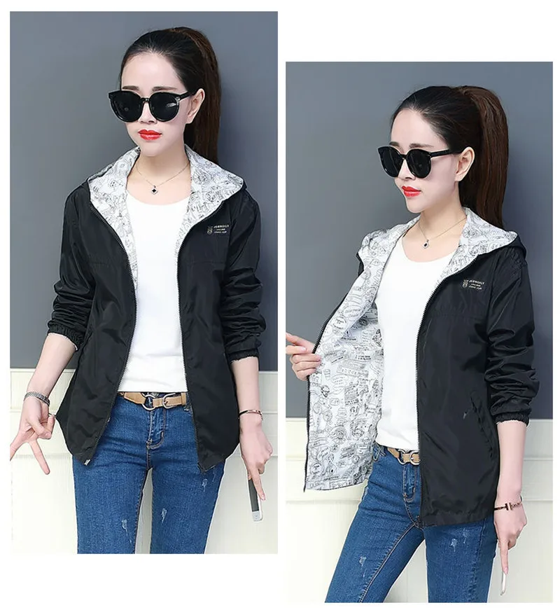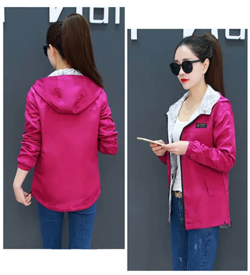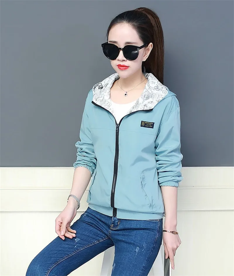 Ветровка женская двусторонняя на молнии с капюшоном, A215