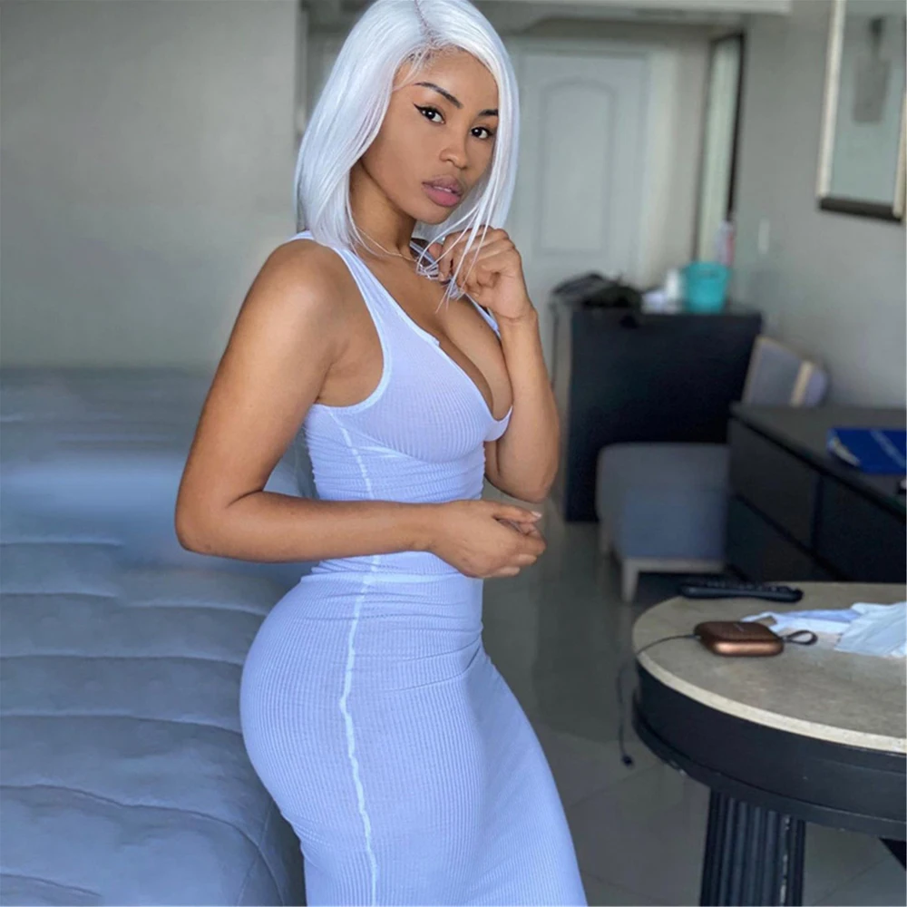 2021 модное трикотажное платье в полоску с v-образным вырезом, женское сексуальное платье средней длины без рукавов, элегантные уличные вечерние Клубные облегающие платья, Новинка лета