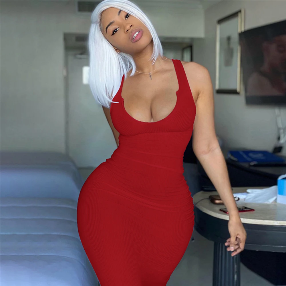 Сексуальное платье без рукавов с u-образным вырезом, женские модные...
